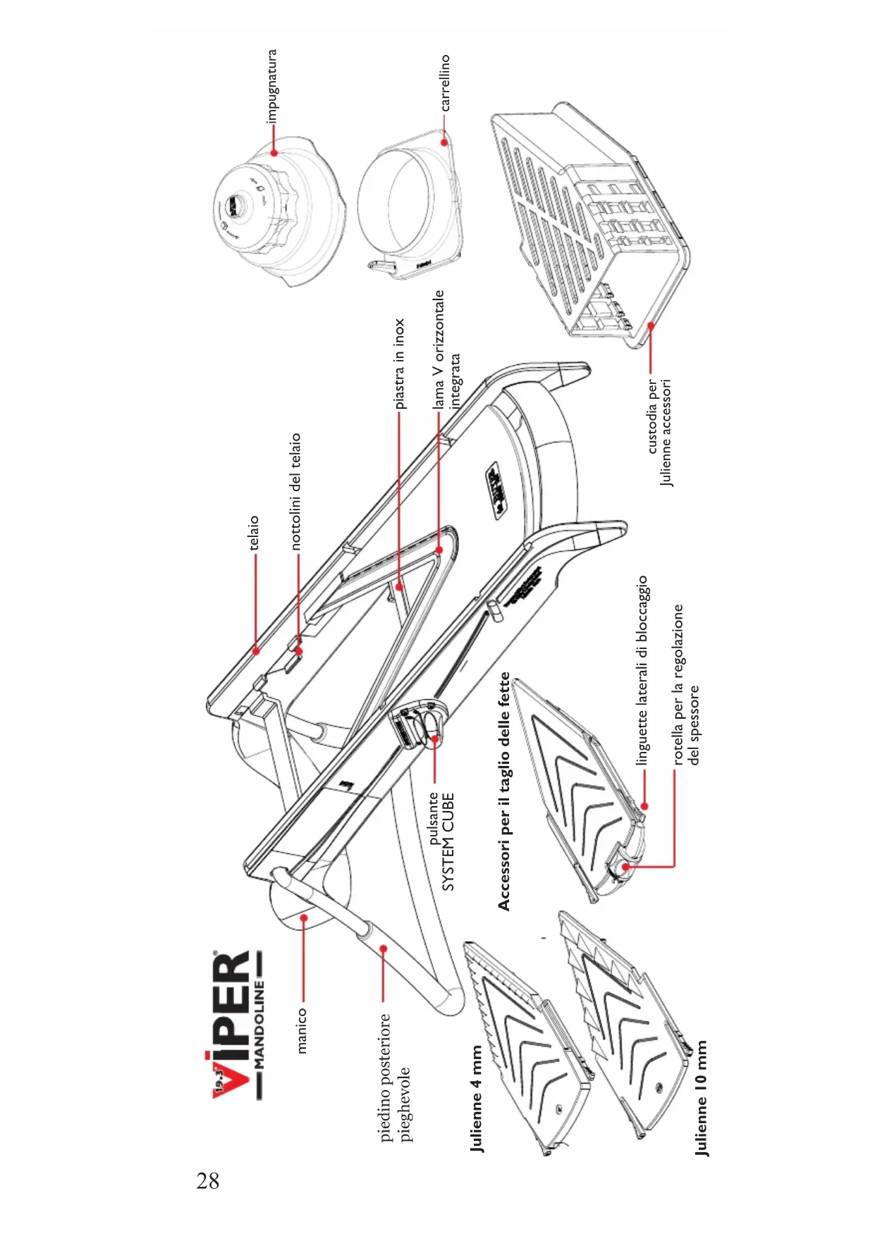 - Si sconsiglia di mettere il Mandoline VIPER in lavastoviglie.