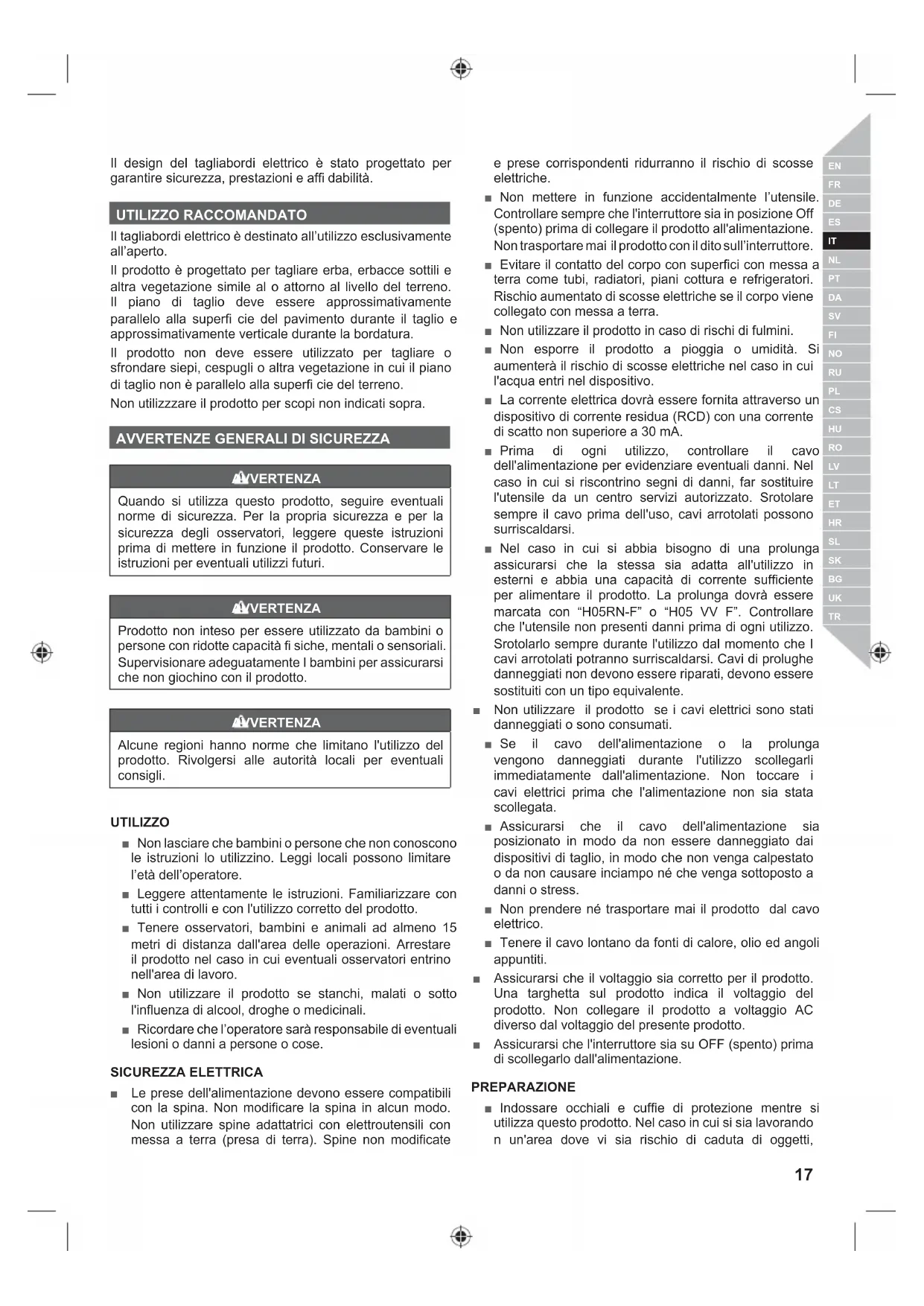 AVVERTENZE DI SICUREZZA DEL TAGLIABORDI