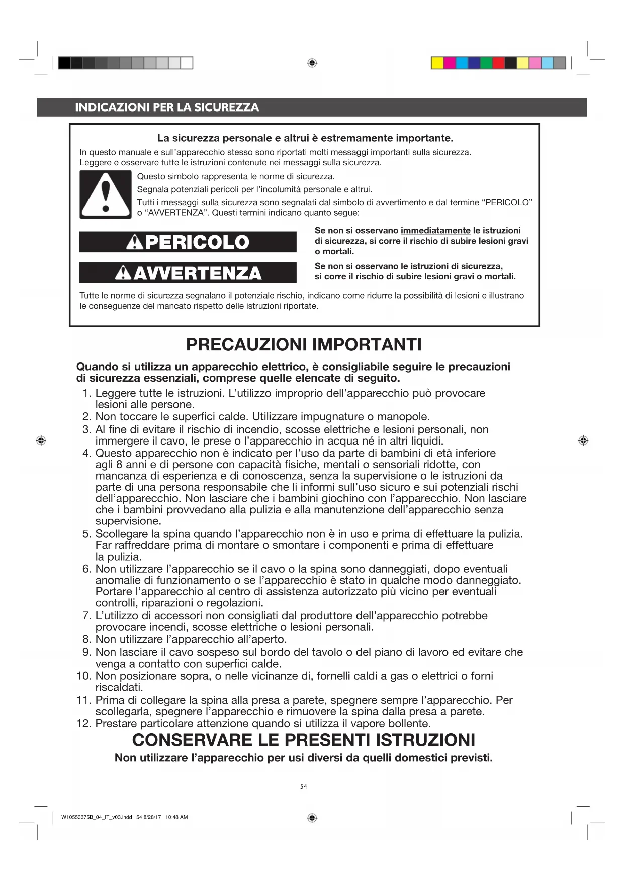 CONSERVARE LE PRESENTI ISTRUZIONI
