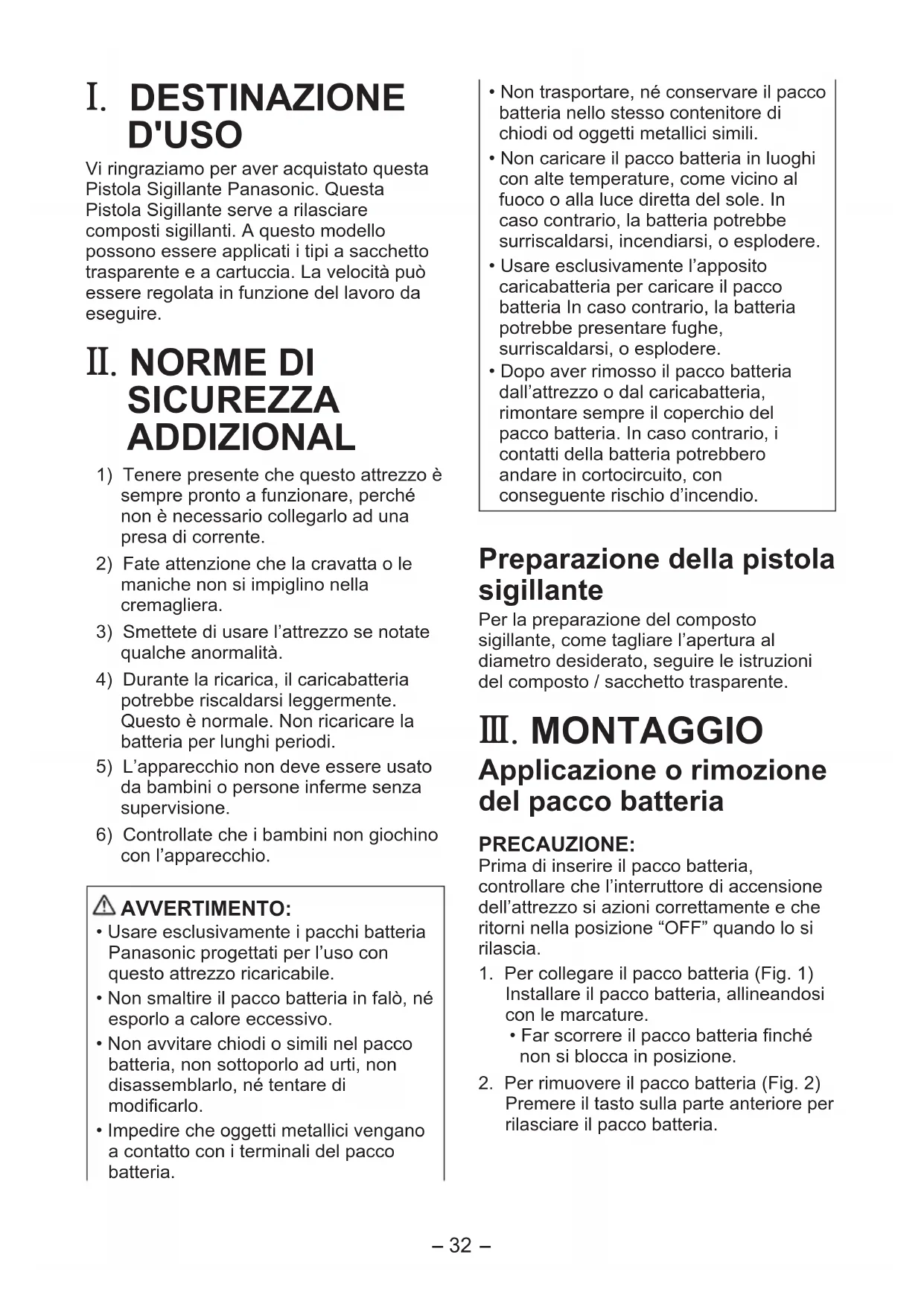 . DESTINAZIONE D'USO Vi ringraziamo per aver acquistato questa Pistola Sigillante Panasonic. Questa Pistola Sigillante serve a rilasciare composti sigillanti. A questo modello possono essere applicati i tipi a sacchetto trasparente e a cartuccia. La velocità può essere regolata in funzione del lavoro da eseguire.