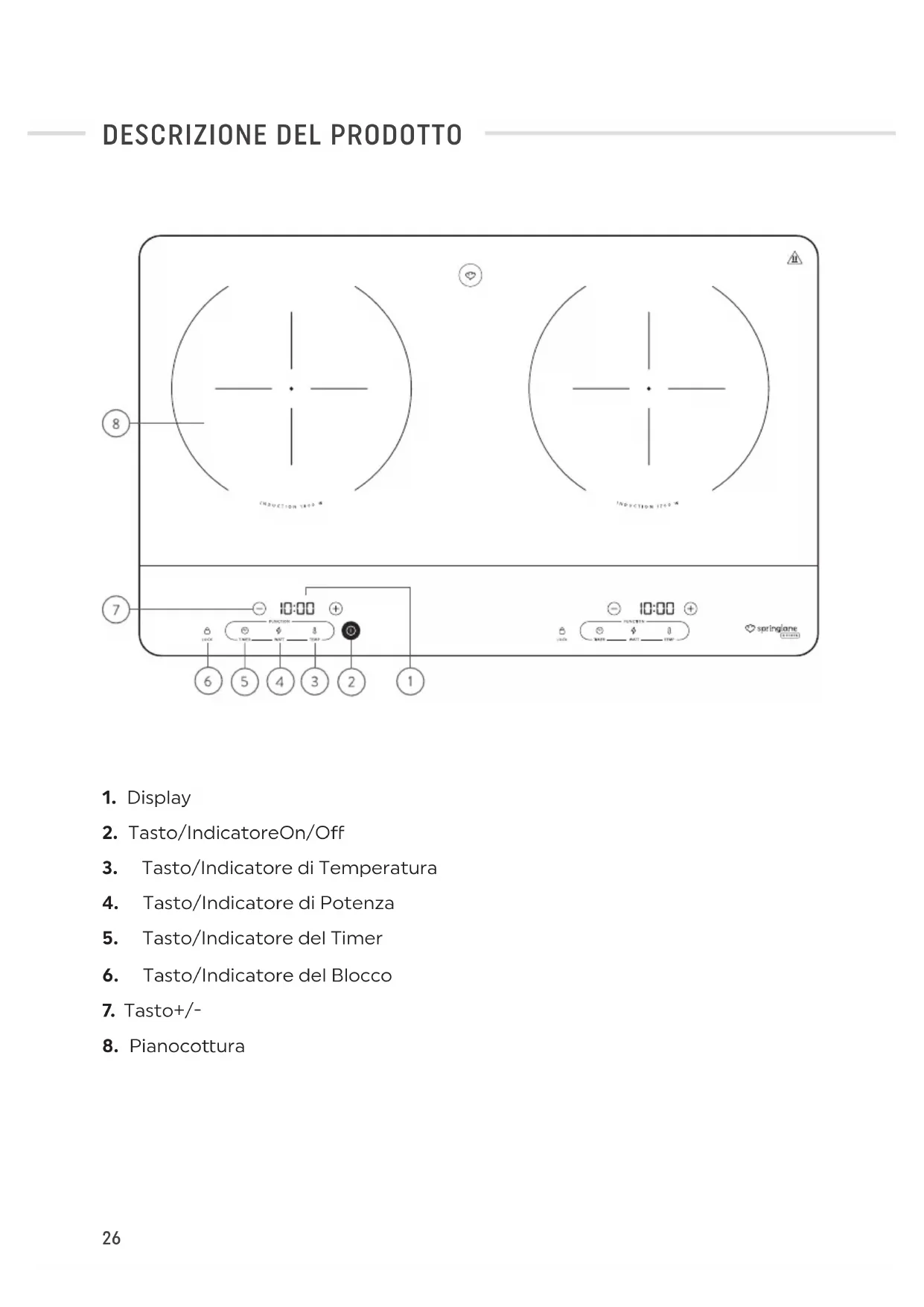 - Prestare att enzione alle part i calde! Aspett are finché l'apparecchio non si è raff reddato, prima di toccarlo con le mani. La superf ici diventa boliente a causa dell'utilizzo, la temperatura resta elevataanche dello aver spento l'apparecchio:non appoggiare stoviglia sulla superf ici.