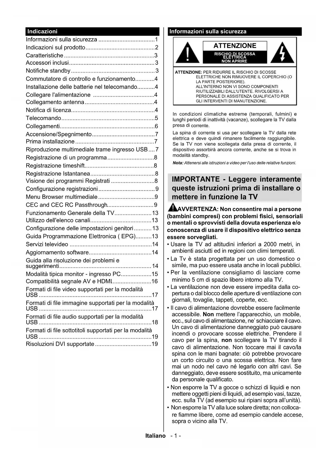 IMPORTANTE - Leggere interamente queste istruzioni prima di installare oMETTERE in funzione la TV