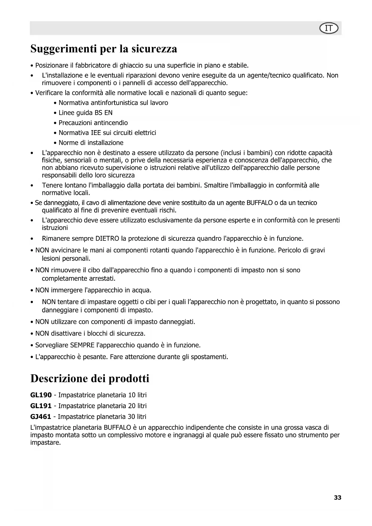 Scarica le istruzioni per il tuo Robot da cucina in formato PDF gratuitamente! Trova il tuo manuale GL190 - BUFFALO e riprendi in mano il tuo dispositivo elettronico. In questa pagina sono pubblicati tutti i documenti necessari per l'utilizzo del tuo dispositivo. GL190 del marchio BUFFALO.