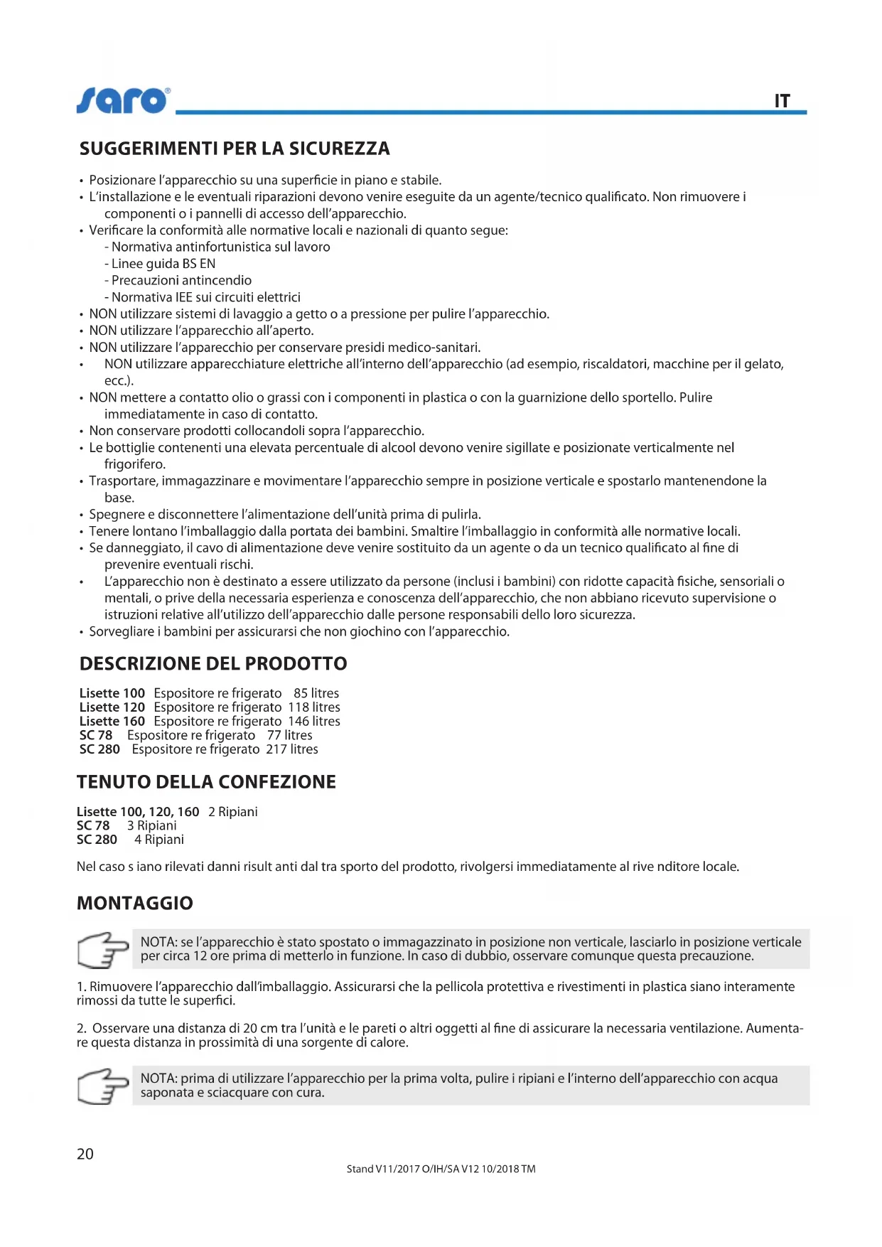 LISETTE 120 - Frigorifero Saro - Manuale utente e istruzioni gratuiti