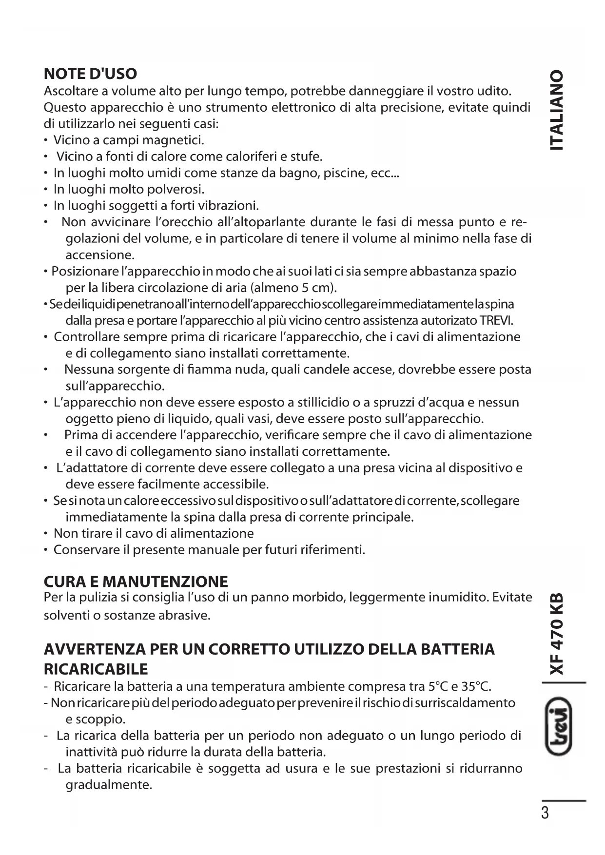 Trova gratuitamente il manuale del dispositivo XF 470 KB Trevi in formato PDF.