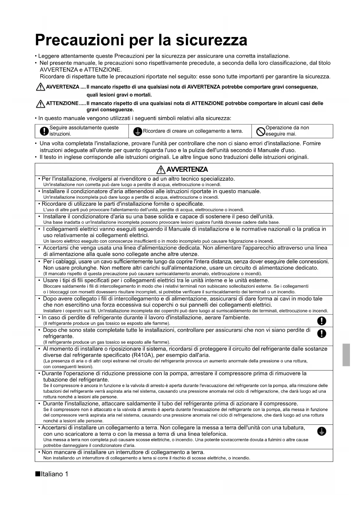 - Leggere attentamente queste Precauzioni per la sicurezza per assicurare una corretta installazione.