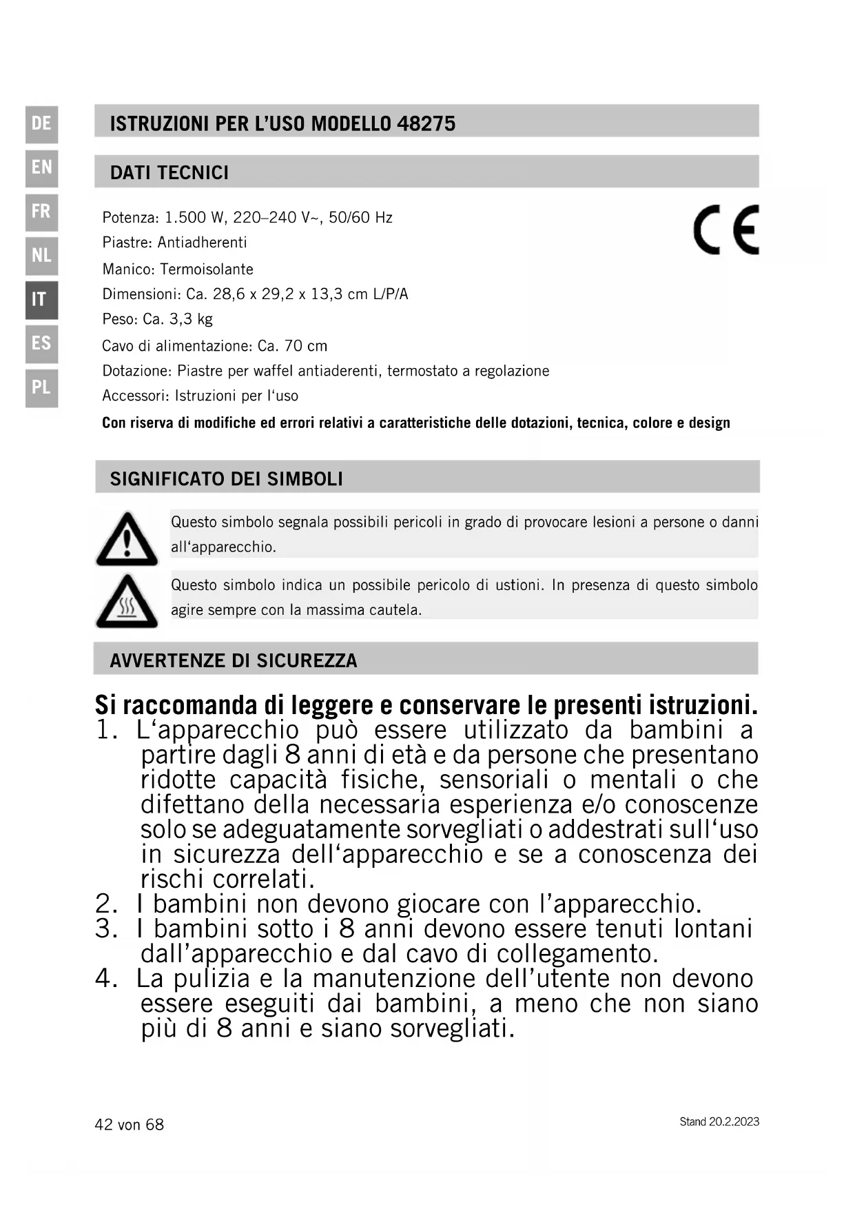 MANUALE UTENTE Brüssel 48275 UNOLD