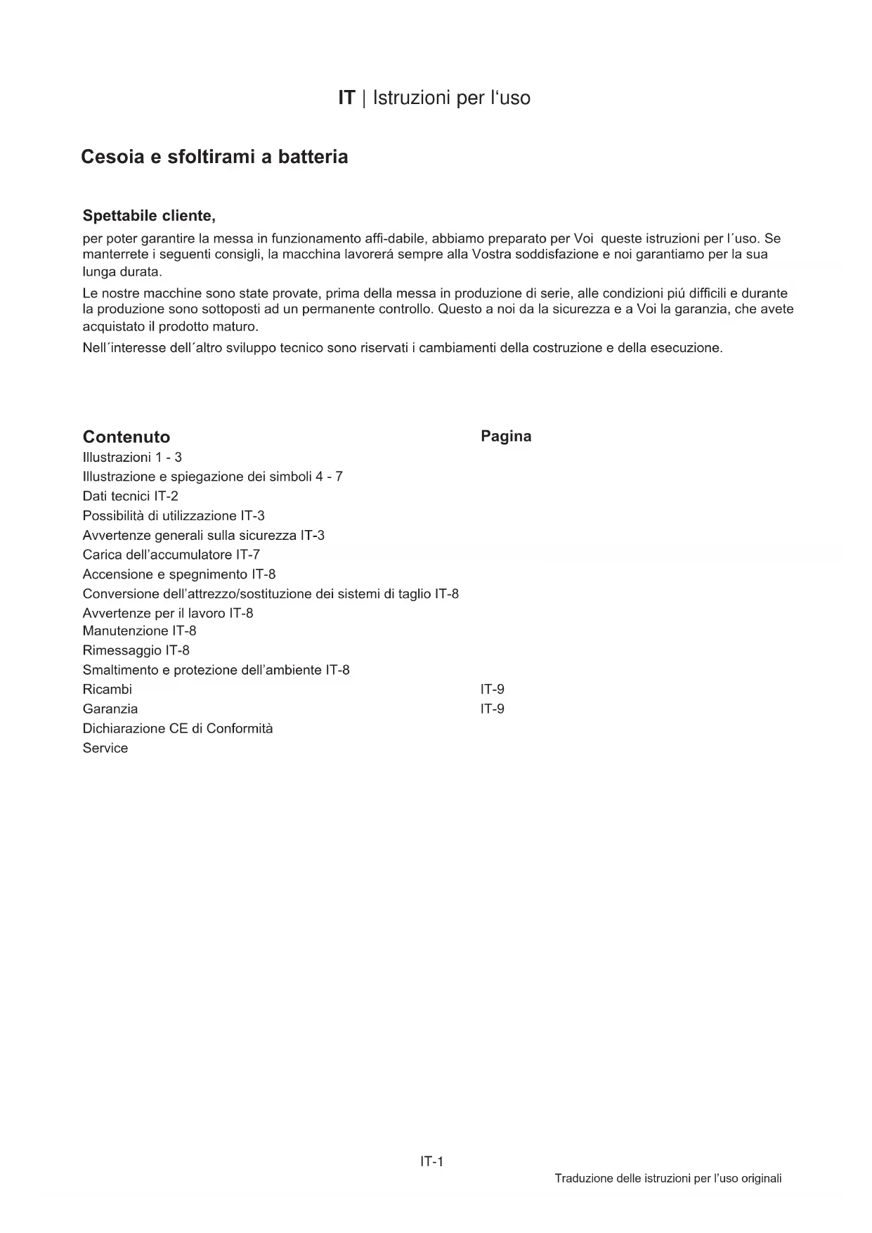Istruzioni per l'uso - Traduzione delle istruzioni per l'uso originali.