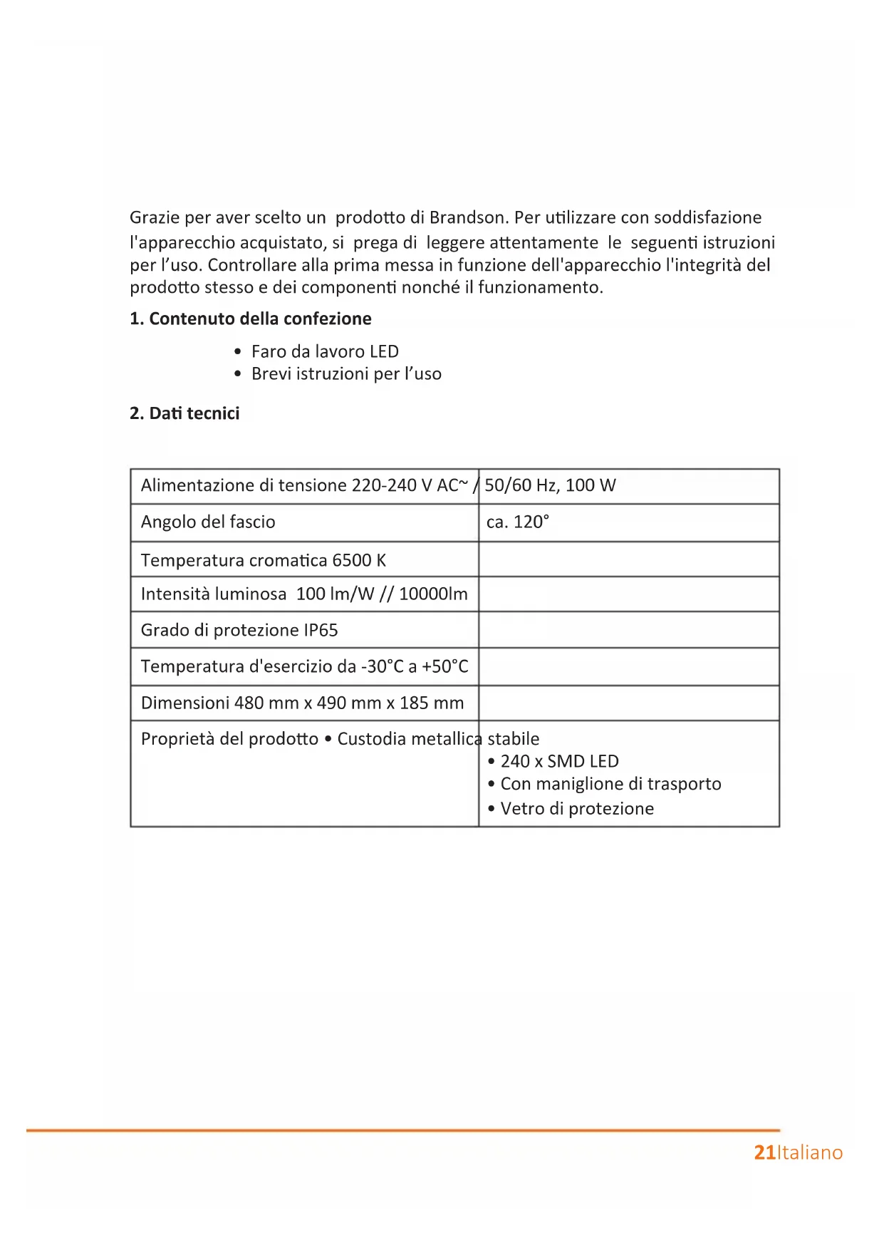 304333 - Lampada da lavoro LED Brandson - Manuale utente e istruzioni gratuiti