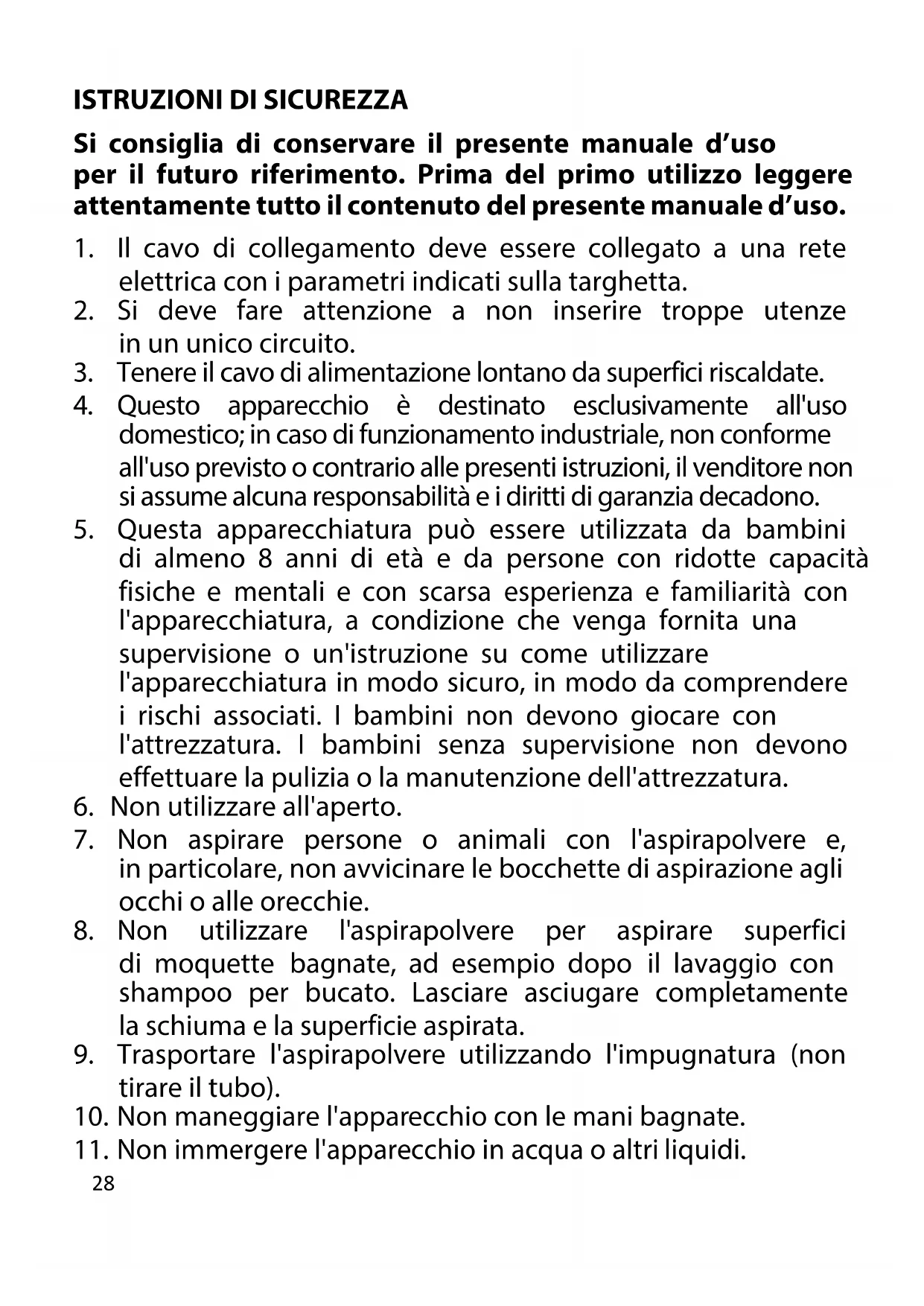 danni derivanti da un uso improprio dell'apparecchio. AVVERTENZA: L'uso improprio dell'apparecchio può causare lesioni. ATTENZIONE: Il sacchetto di plastica può essere pericoloso: per evitare il soffocamento con il sacchetto, tenerlo lontano da neonati e piccoli bambini.30