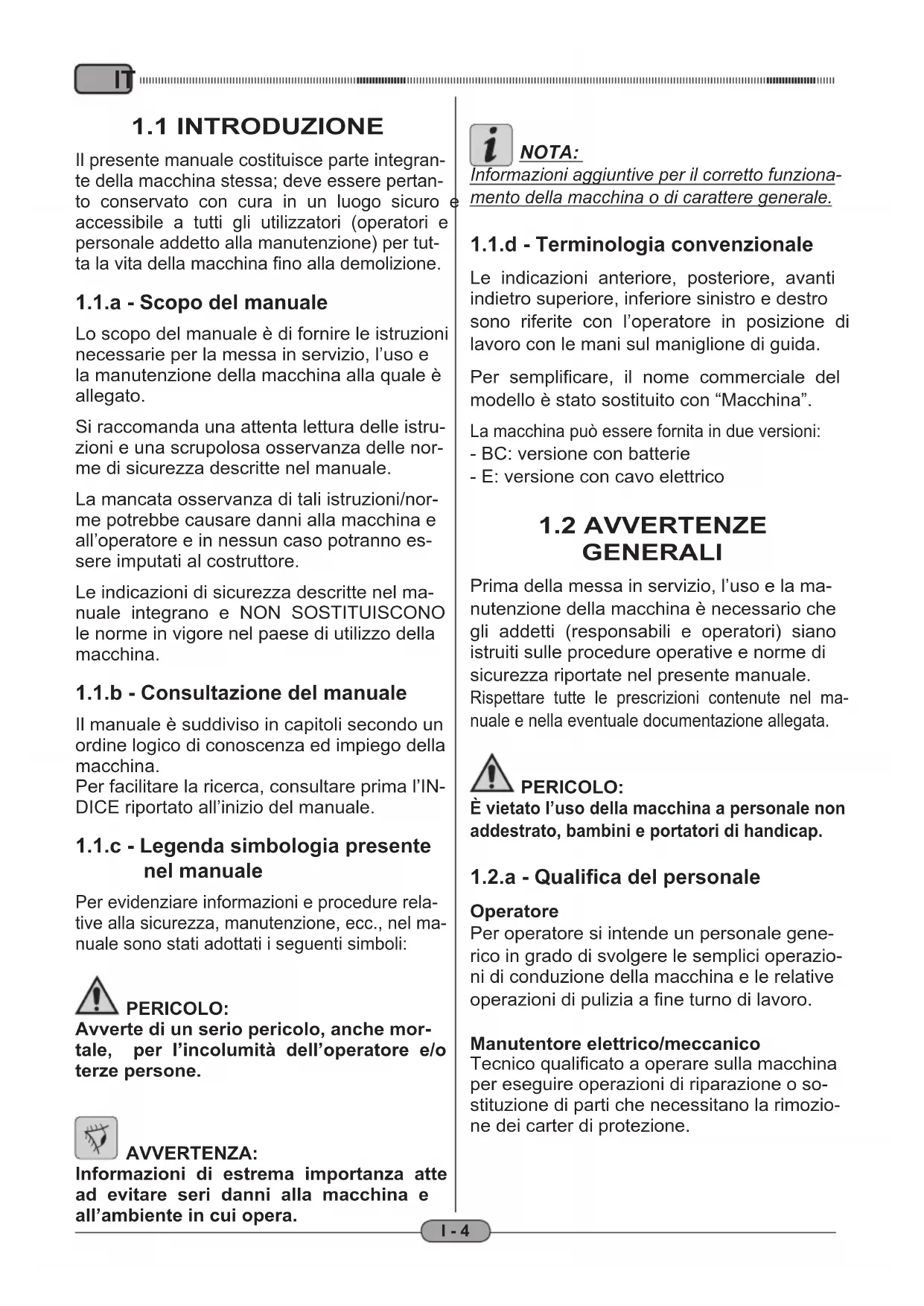 1.1.c Legenda simbologia presente nel manuale....I-4
