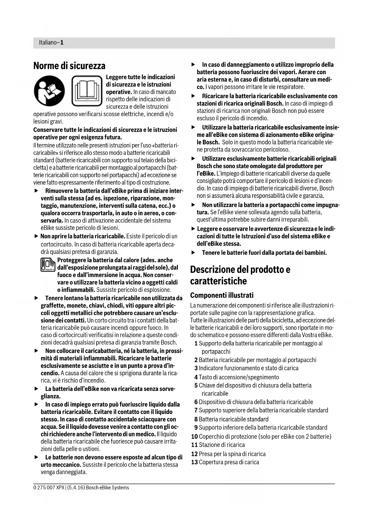 | Sicurezza | Evita i cortocircuiti, non smontare la batteria, utilizzare solo con caricabatterie BOSCH compatibili. |