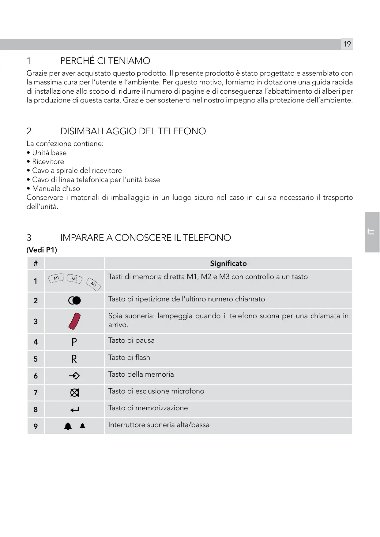 USO PREVISTO Questo telefono è progettato per essere collegato a una rete telefonica analogica pubblica o a una prolunga analogica di un sistema PBX compatibile.