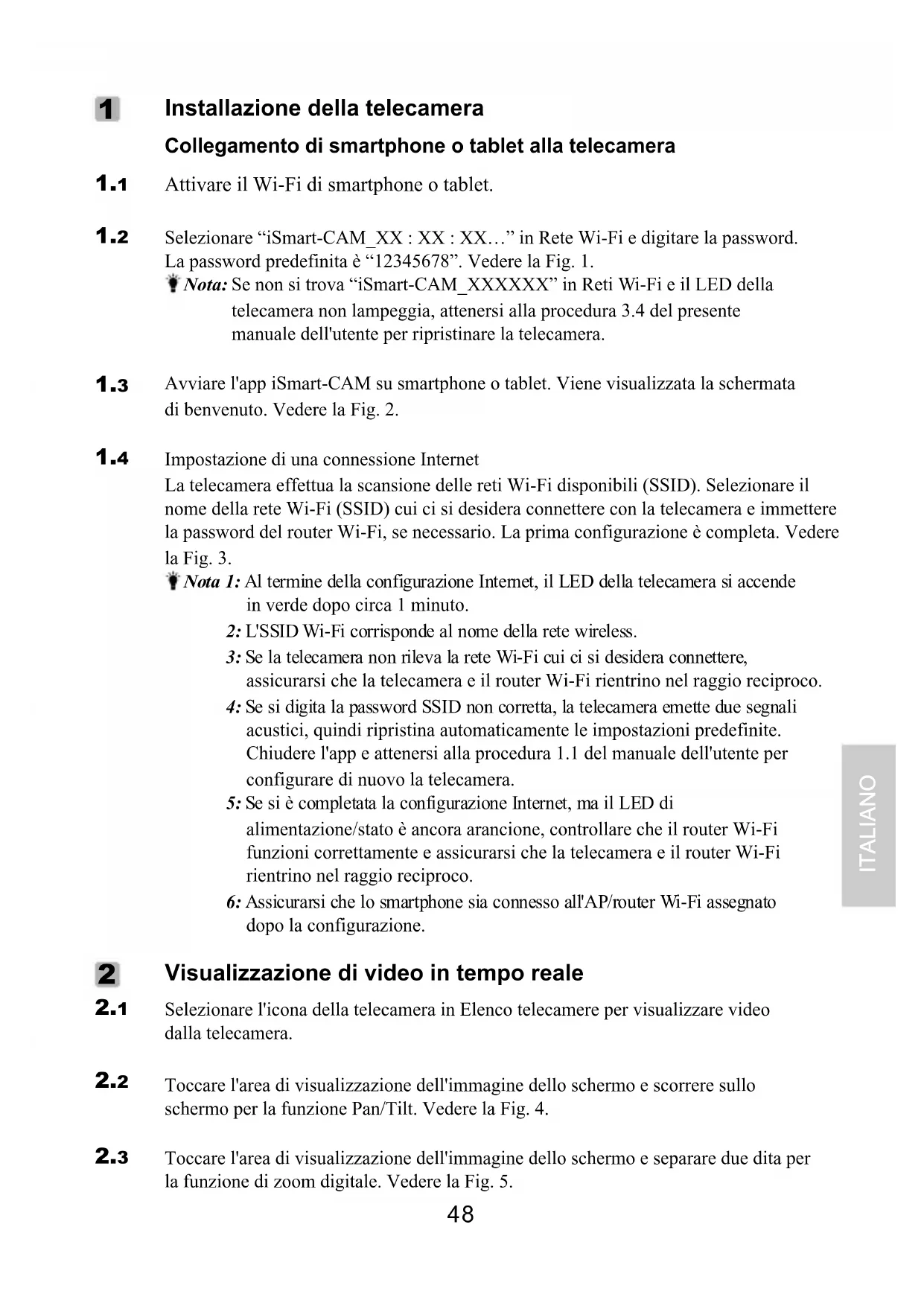 1.2 Selezionare "iSmart-CAM_XX : XX : XX..." in Rete Wi-Fi e digitare la password. La password predefinita è "12345678". Vedere la Fig. 1.