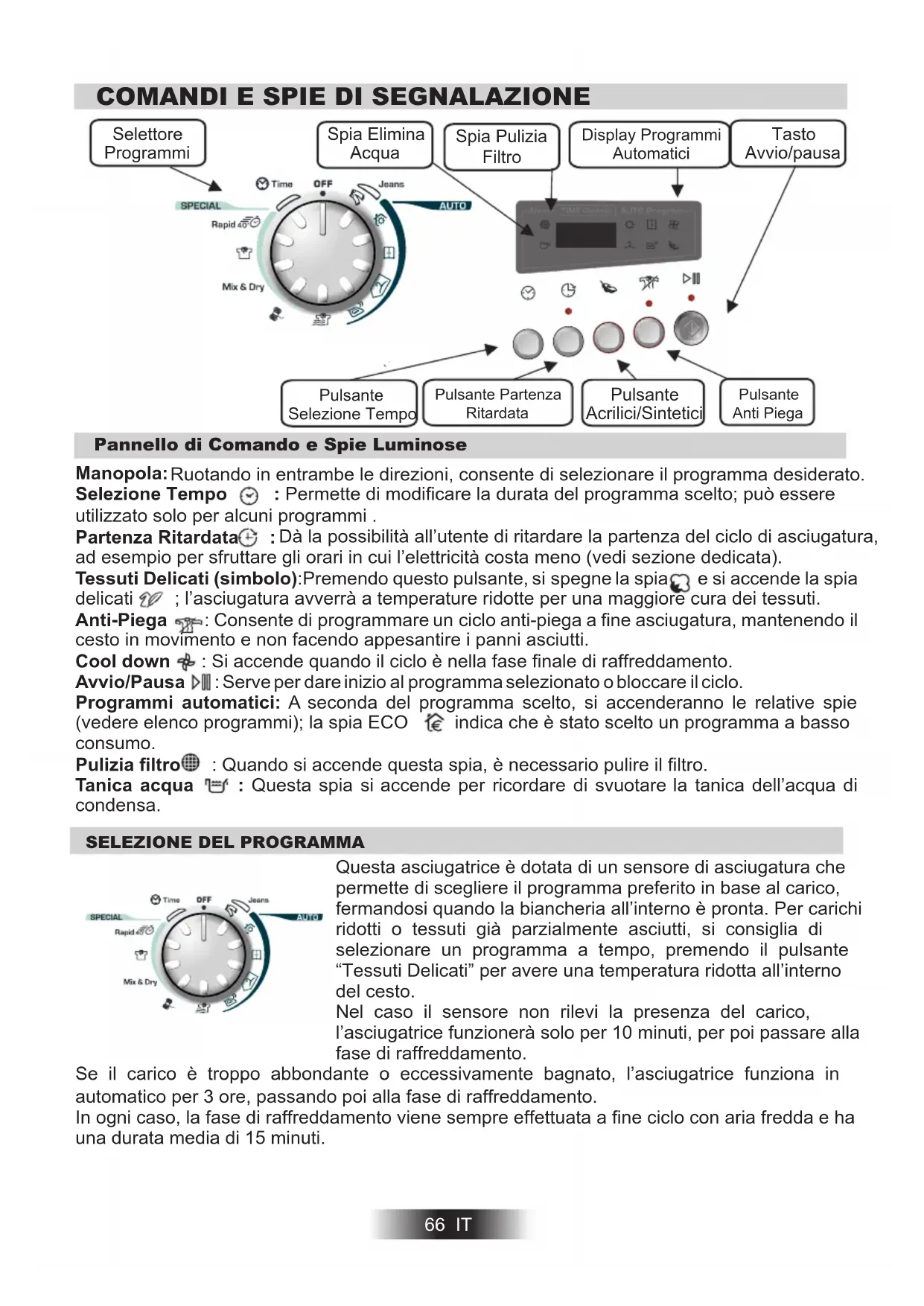 IMPORTANTE: Ai fini della massima efficacia della macchina, prima di agli ciclo di asciugatura è essenziale verificare la pulizia del filtro antifilacce.