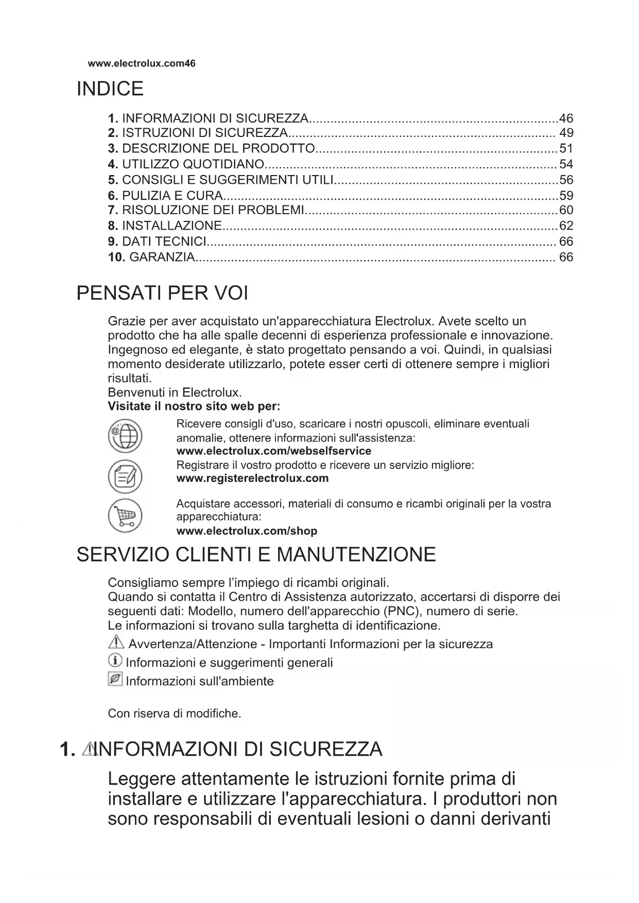 Grazie per aver acquistato un'apparecchiatura Electrolux. Avete scelto un prodotto che ha alle spalle decenni di esperienza professionale e innovazione. Ingegnoso ed elegante, è stato progettato pensando a voi. Quindi, in qualsiasi momento desiderate utilizzarlo, potete esser certi di ottenere sempre i migliori risultati.