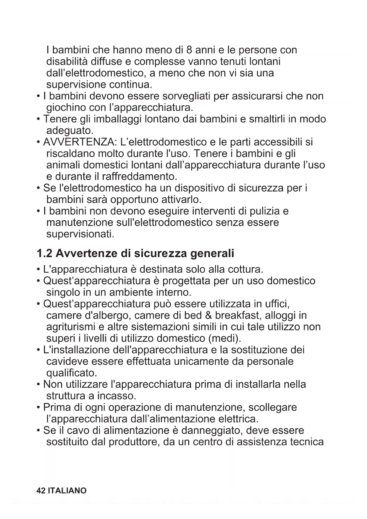 1.2 Avvertenze di sicurezza generali