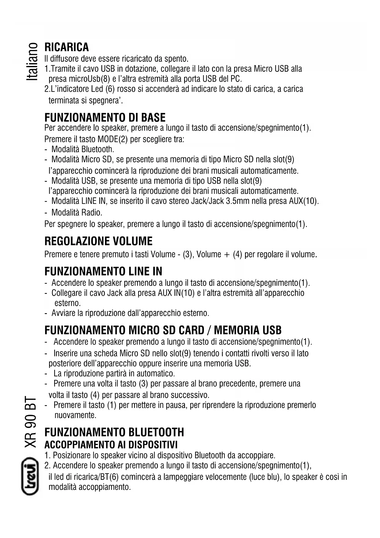 MANUALE UTENTE XR 90 BT Trevi