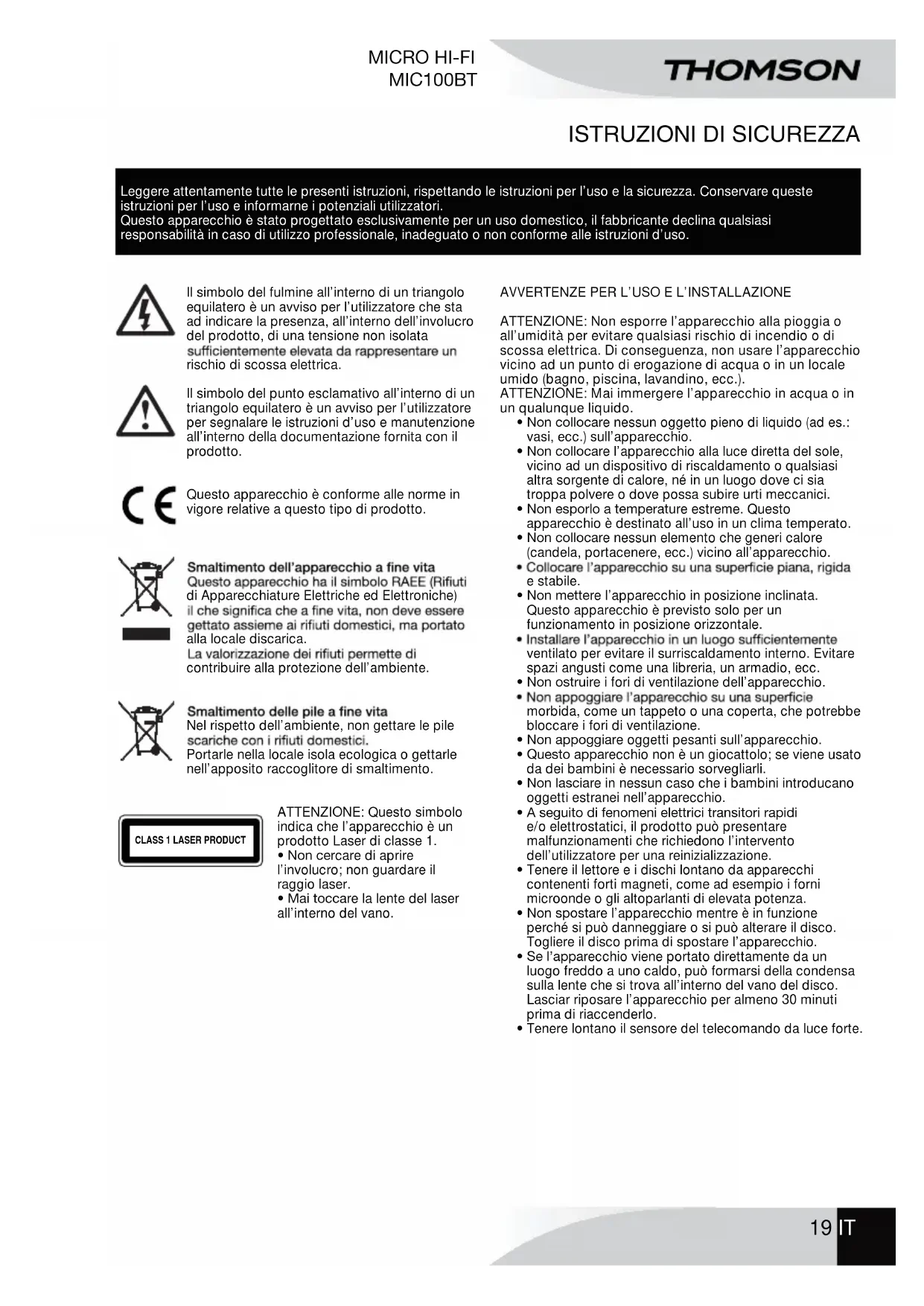 MANUALE UTENTE MIC100BT THOMSON