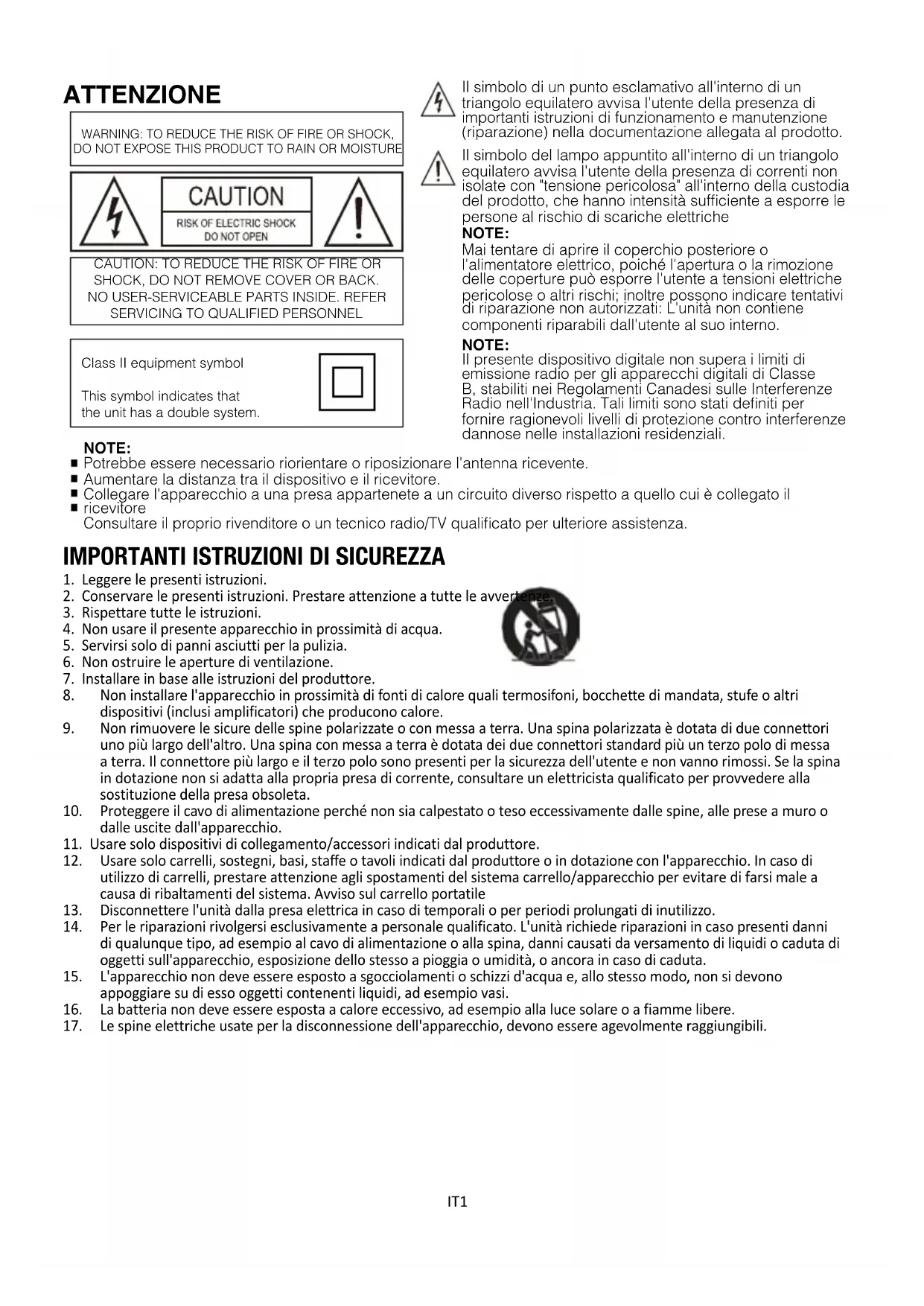 IMPORTANTI ISTRUZIONI DI SICUREZZA