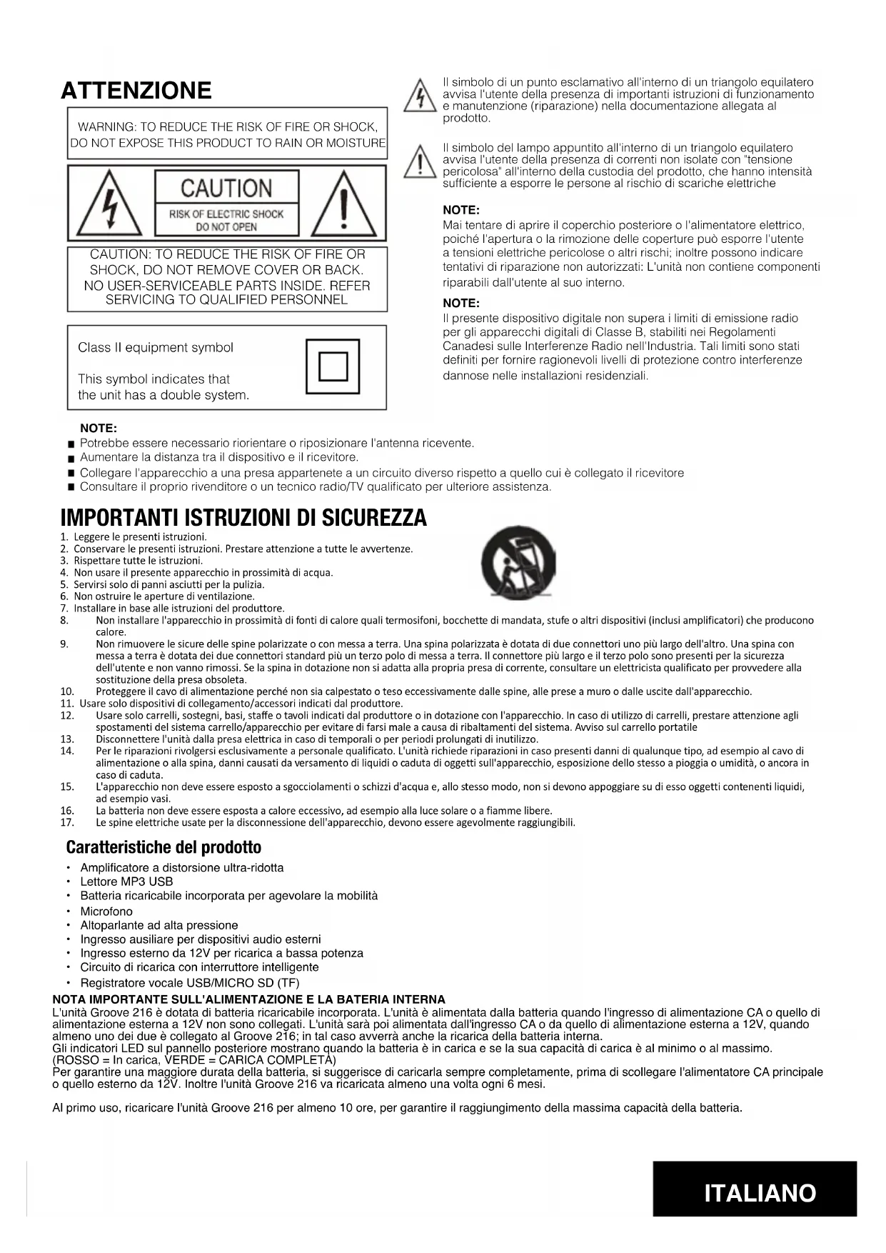 MODE REC 1 2 3 4 5 6 iDance® GROOVE 216 LED USB LINE IN MICRO SD MIC.VOL ECHO VOLUME DC9V IN CHAR/FULL DC-IN DISCO BALL OFF ON EXT DC12V IN + - POWER 8 OFF ON SPEAKER LED OFF ON 15 16 17 14 MIC IN CAUTION ATTENTION FOR USA MADE IN CHINA WC/NOI: CNTM/CM/CM/CM/CM/CM/CM/CM/CM/CM/CM/CM/CM/CM/CM/CM/CM/CM/CM/CM/CM/CM/CM/CM/CM/CM/CM/CM/CM/CM/CM/CM/CM/CM/CM/CM/CM/CM/CM/CM/CM/CM/CM/CM/CM/CM/CM/CM/CM/CM/CM/CA Designed by iDance USA. Made in ChinaDescrizione Panello