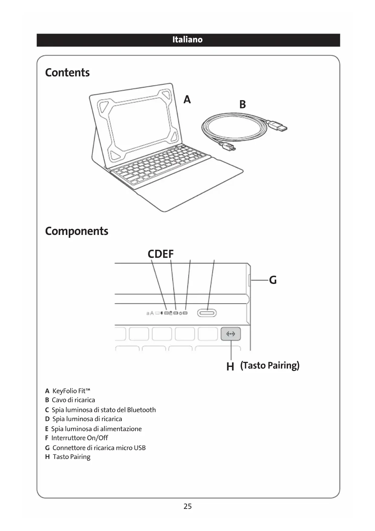 KeyFolio non è un giocattolo. Tenere fuori alla portata dei bambini. Assicurarsi che chiunque utilizzii il prodotto legga e segua quantoindicato nelle presenti avvertenze e struzioni. - Non lasciare KeyFolio in ricarica per periodi prolongati se non viene utilizzato.