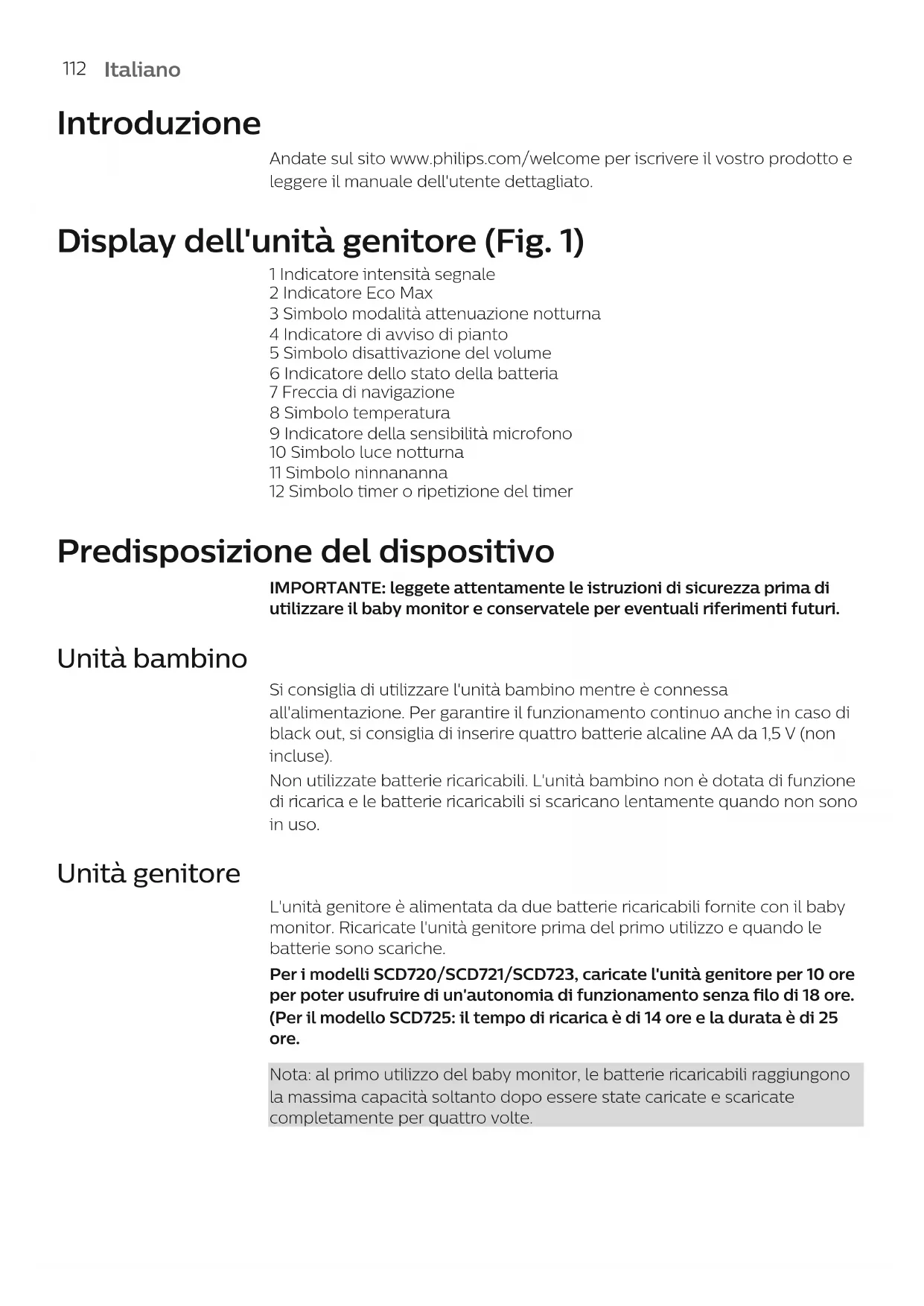 Scarica le istruzioni per il tuo Monitor per bambini in formato PDF gratuitamente! Trova il tuo manuale AVENT SCD723 - PHILIPS e riprendi in mano il tuo dispositivo elettronico. In questa pagina sono pubblicati tutti i documenti necessari per l'utilizzo del tuo dispositivo. AVENT SCD723 del marchio PHILIPS.