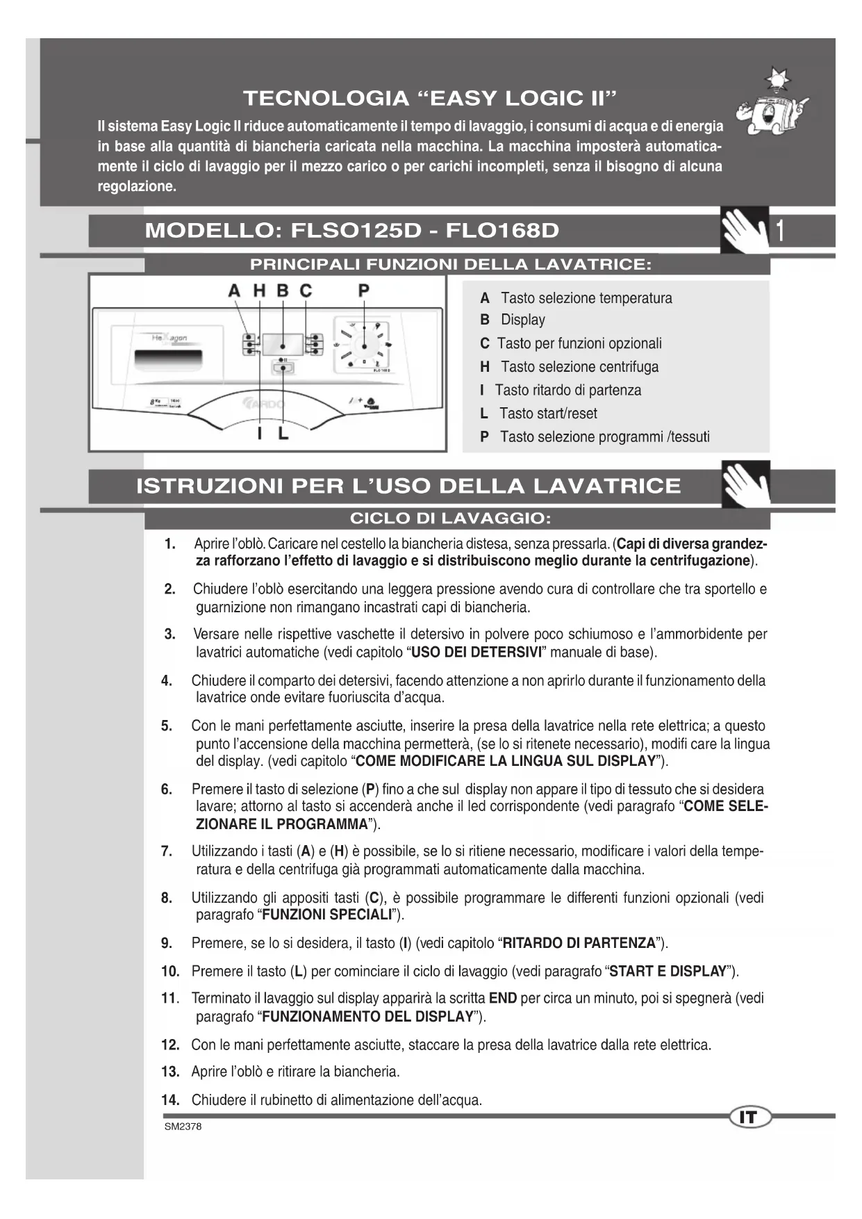 FLO168D - Lavatrice Ardo - Manuale utente e istruzioni gratuiti