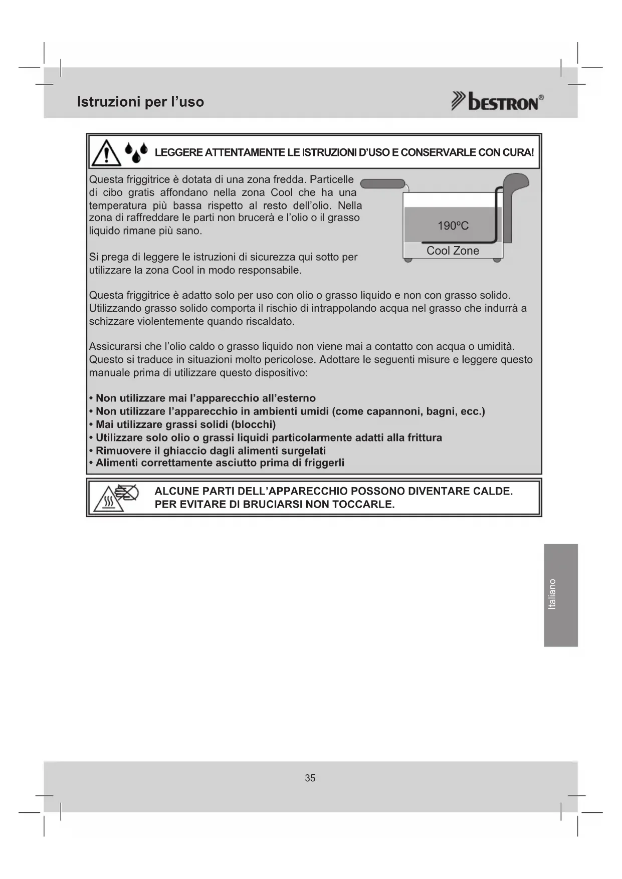 Scarica le istruzioni per il tuo Friggitrice in formato PDF gratuitamente! Trova il tuo manuale AF450B - BESTRON e riprendi in mano il tuo dispositivo elettronico. In questa pagina sono pubblicati tutti i documenti necessari per l'utilizzo del tuo dispositivo. AF450B del marchio BESTRON.