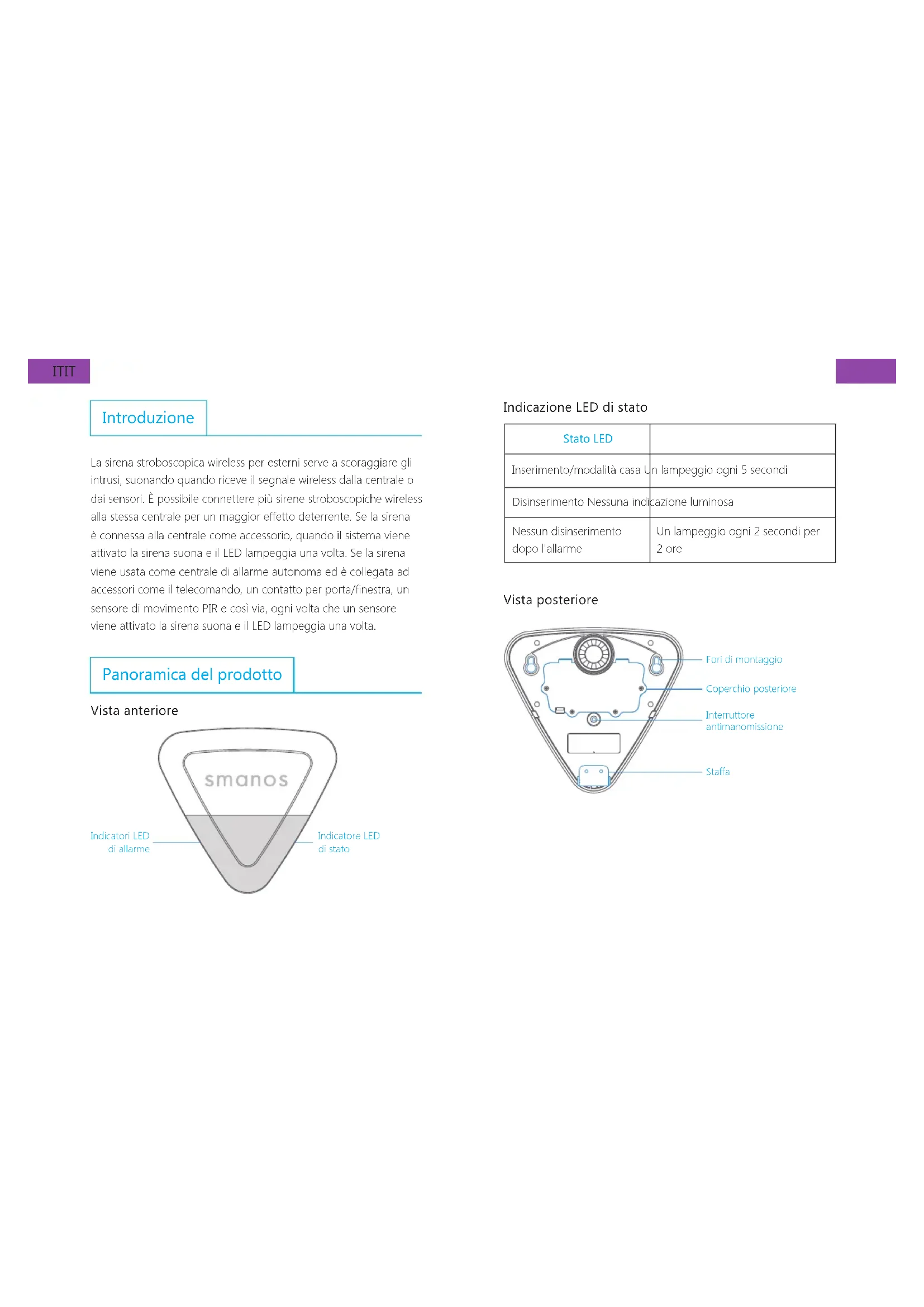 Scarica le istruzioni per il tuo Allarme sonoro wireless in formato PDF gratuitamente! Trova il tuo manuale SS2800 - smanos e riprendi in mano il tuo dispositivo elettronico. In questa pagina sono pubblicati tutti i documenti necessari per l'utilizzo del tuo dispositivo. SS2800 del marchio smanos.