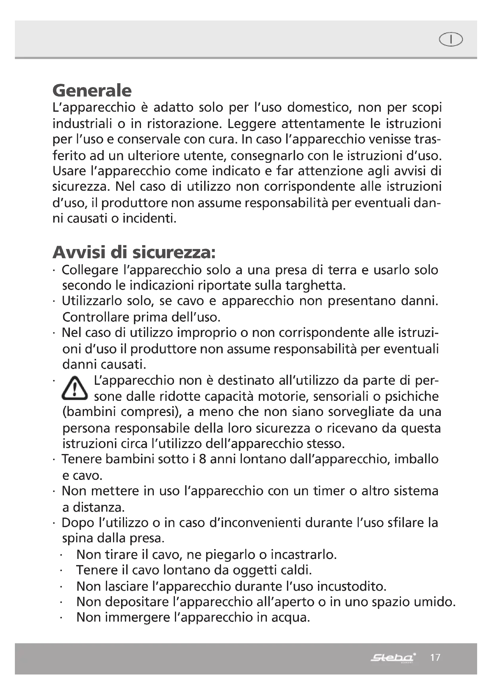 Scarica le istruzioni per il tuo Pentola a cottura lenta in formato PDF gratuitamente! Trova il tuo manuale ER 1 - STEBA e riprendi in mano il tuo dispositivo elettronico. In questa pagina sono pubblicati tutti i documenti necessari per l'utilizzo del tuo dispositivo. ER 1 del marchio STEBA.