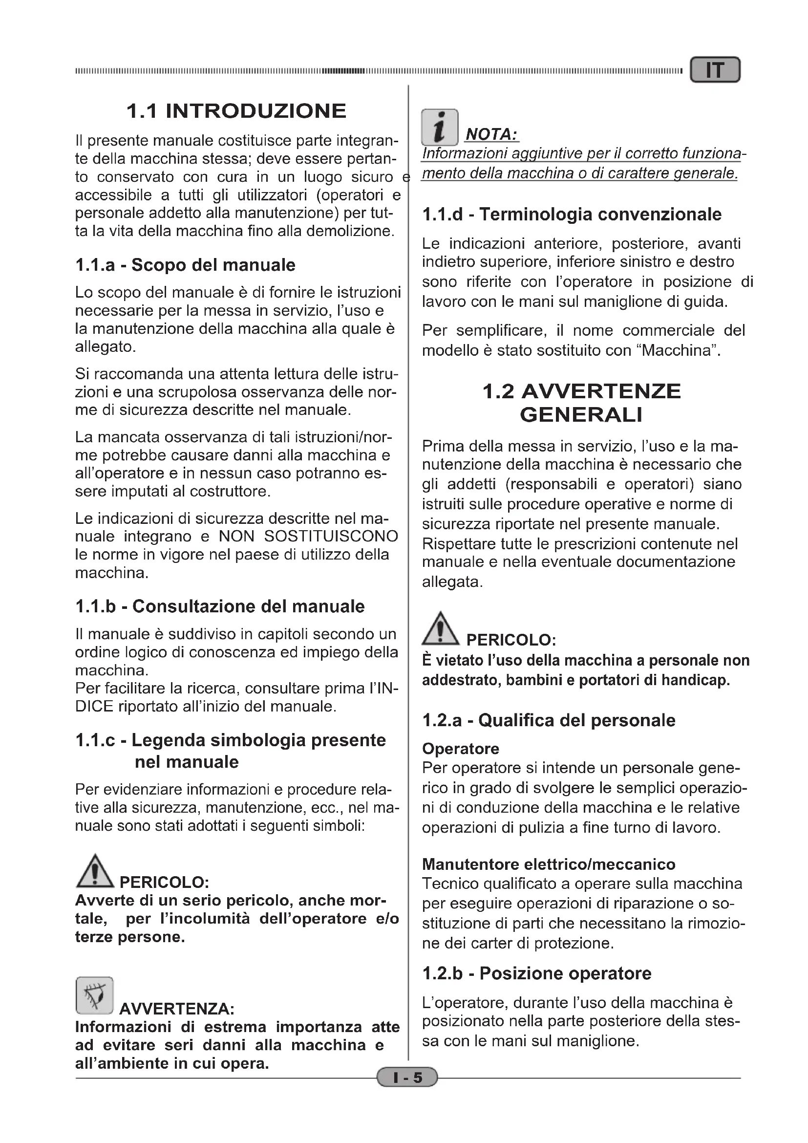 1.2 Avvertenze generali....I-5