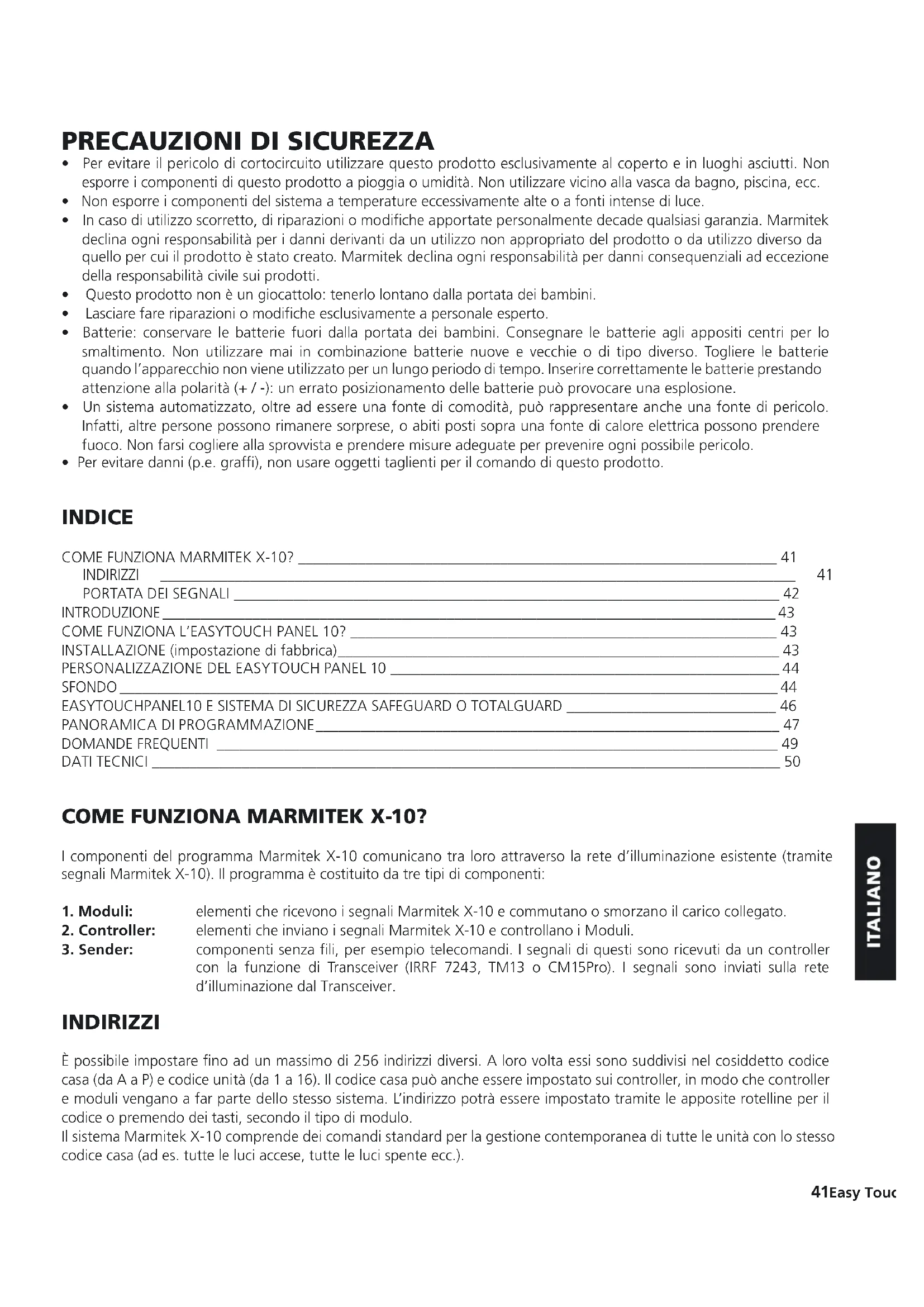 | COME FUNZIONA MARMITEK X-10? | 41 |