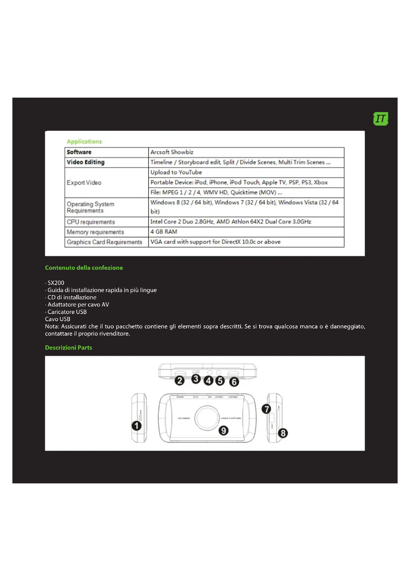 La soluzione portatile per la registrazione e sharing. The nuovo HD portatile giocatore grabber SX200 è l'ultima soluzione per registrare i tuoi migliori giochi in qualità HD fino a 1080p. Progettato specificamente per i giocatori e di YouTube, le sue dimensioni da tasca significa che può andare da nessuna parte con ingressi USB e SD possono collegare un'unità flash o scheda SD per catturare i vostri giochi senza un PC e può poi editarli e caricarli su Internet facilmente. La SX200 è compatibile con diverse risoluzioni e comprende ingresso HDMI e video component per le diverse console video. Collegamento microfono darà opportunità di discutere i vostri giochi in tempo reale e allo stesso tempo essere registrati. Dispone di connessione video editing software con il quale è possibile caricare i video direttamente su YouTube.