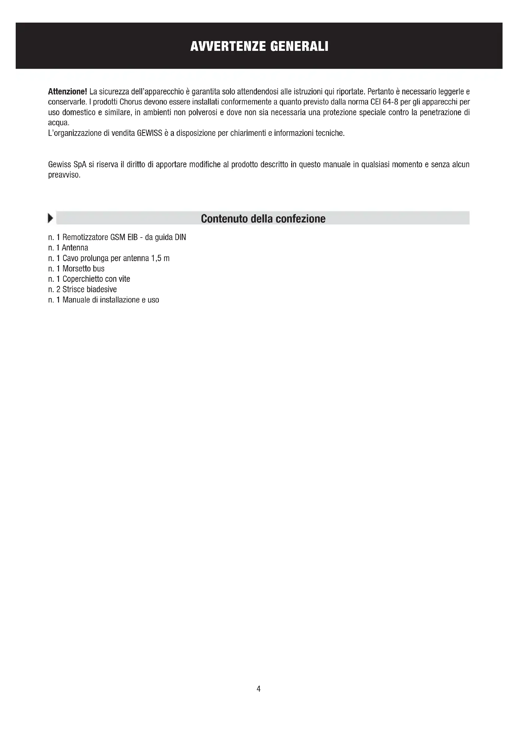 Gewiss SpA si riserva il diritto di apportare modifiche al prodotto descritto in questo manuale in qualsiasi momento e senza alcun preavviso.