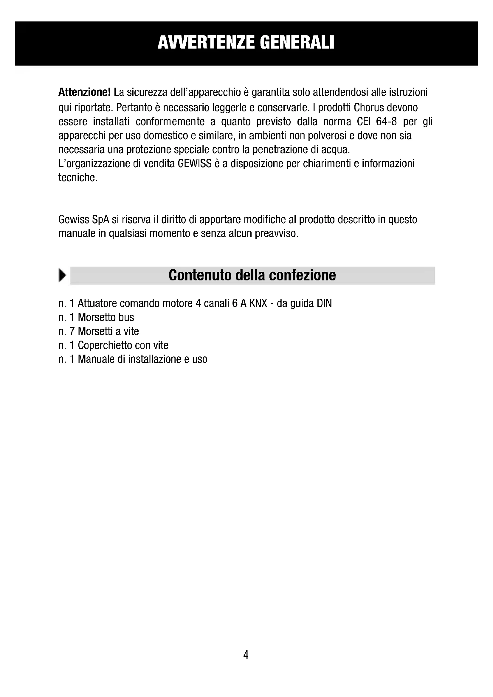 Gewiss SpA si riserva il diritto di apportare modifiche al prodotto descritto in quello manuale in qualsiasi momento e alla alcun preavviso.