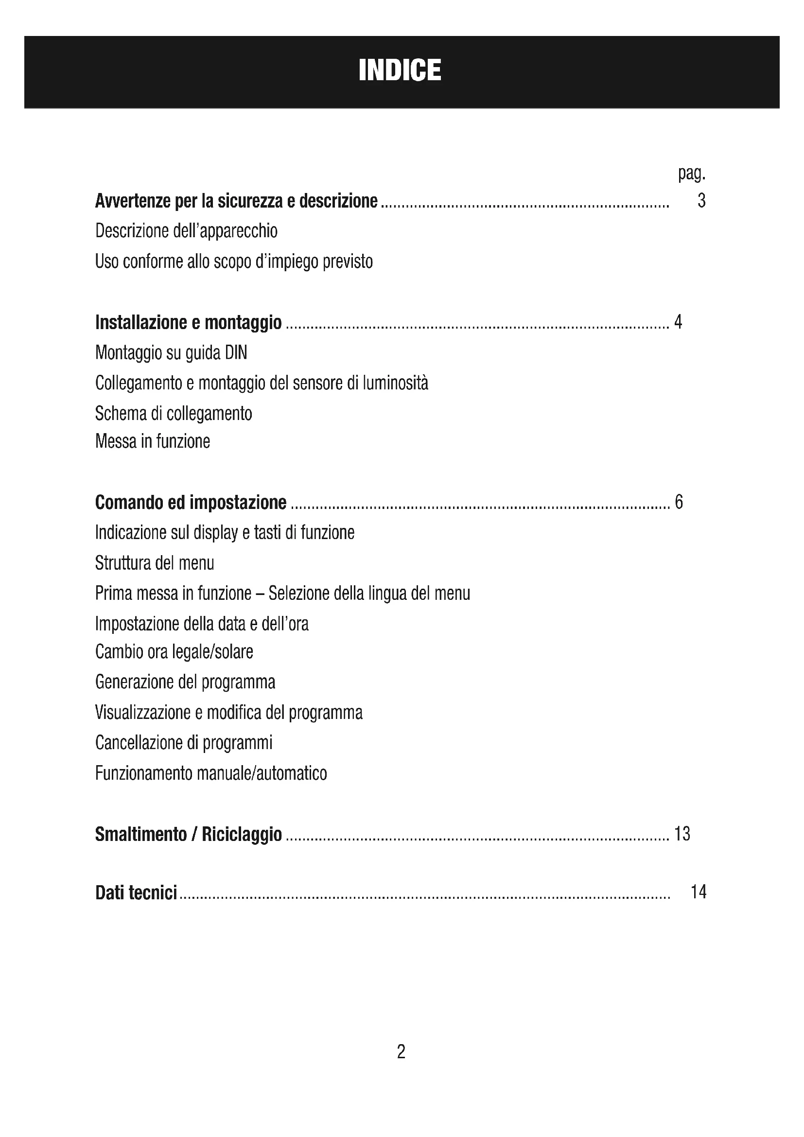 - Interruttore manuale: durata ON / durata OFF / funzionamento automatico.