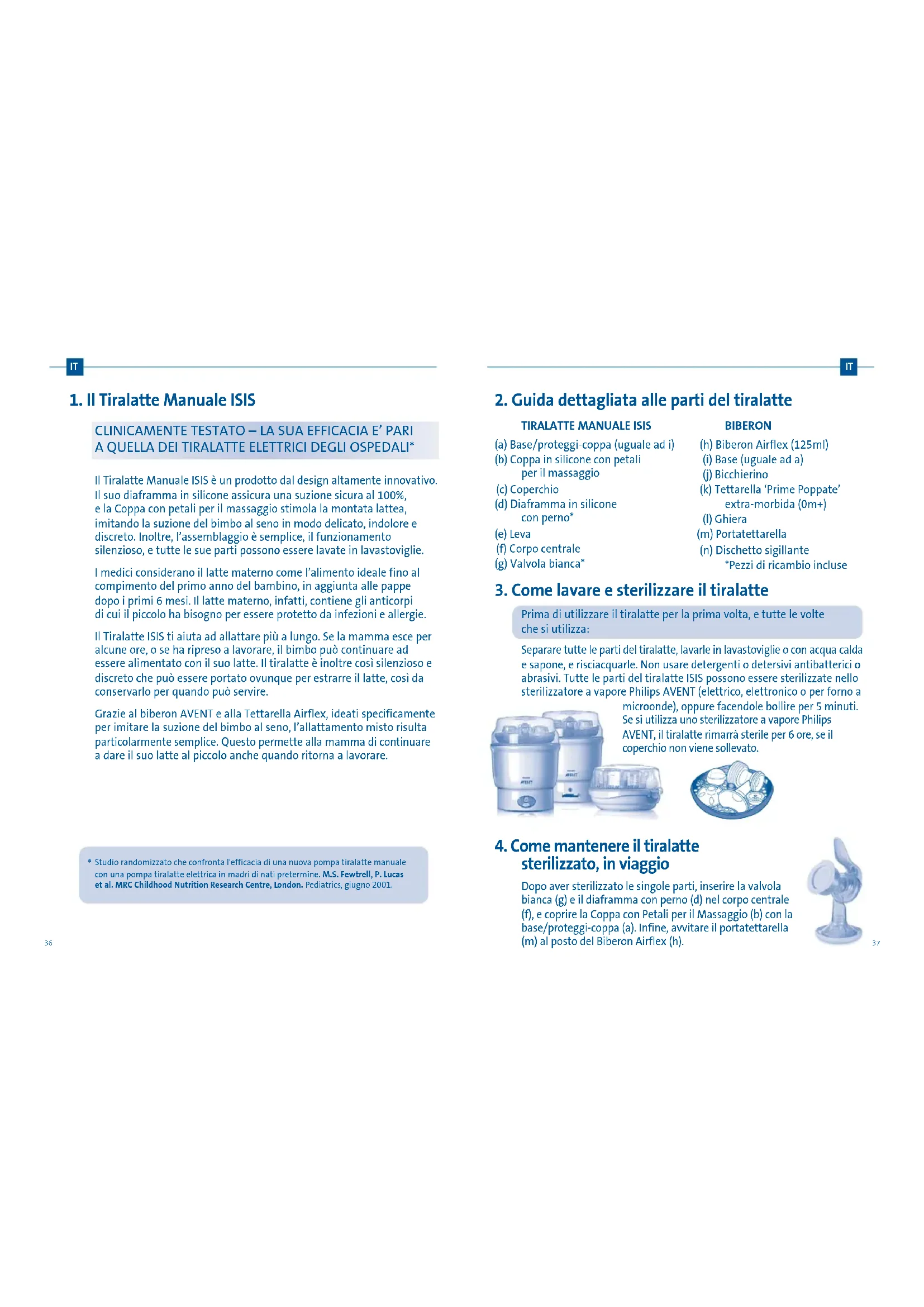 Studio randomizzato che confronta l'efficacia di una nuova pompa tiralatte manuale con una pompa tiralatte elettrica in madri di nati pretermine. M.S. Fewtrell, P. Lucas et al. MRC Childhood Nutrition Research Centre, London. Pediatrics, giugno 2001. 9583-ISIS-FRDENLIT-txt_0210.qxd 25/9/07 14:34 Page 363938
