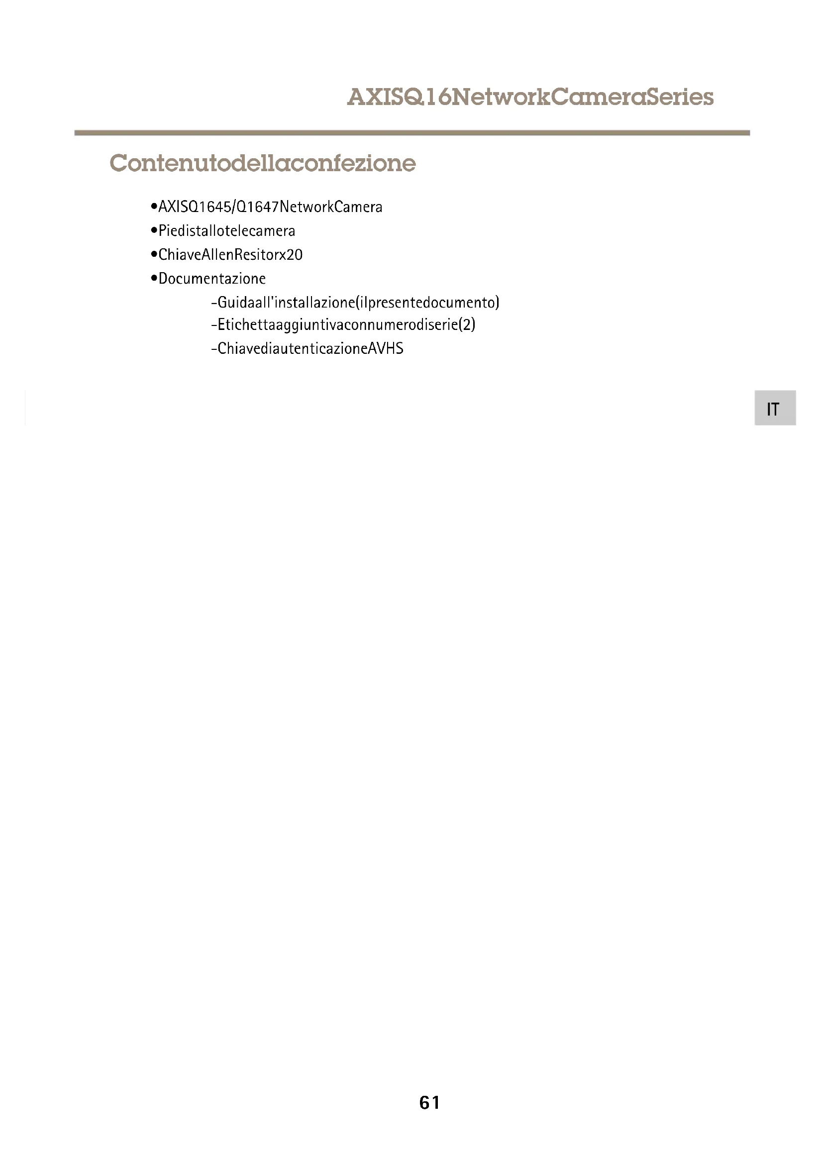 DE60AXISQ16NetworkCameraSeries Contenutodellaconfezione