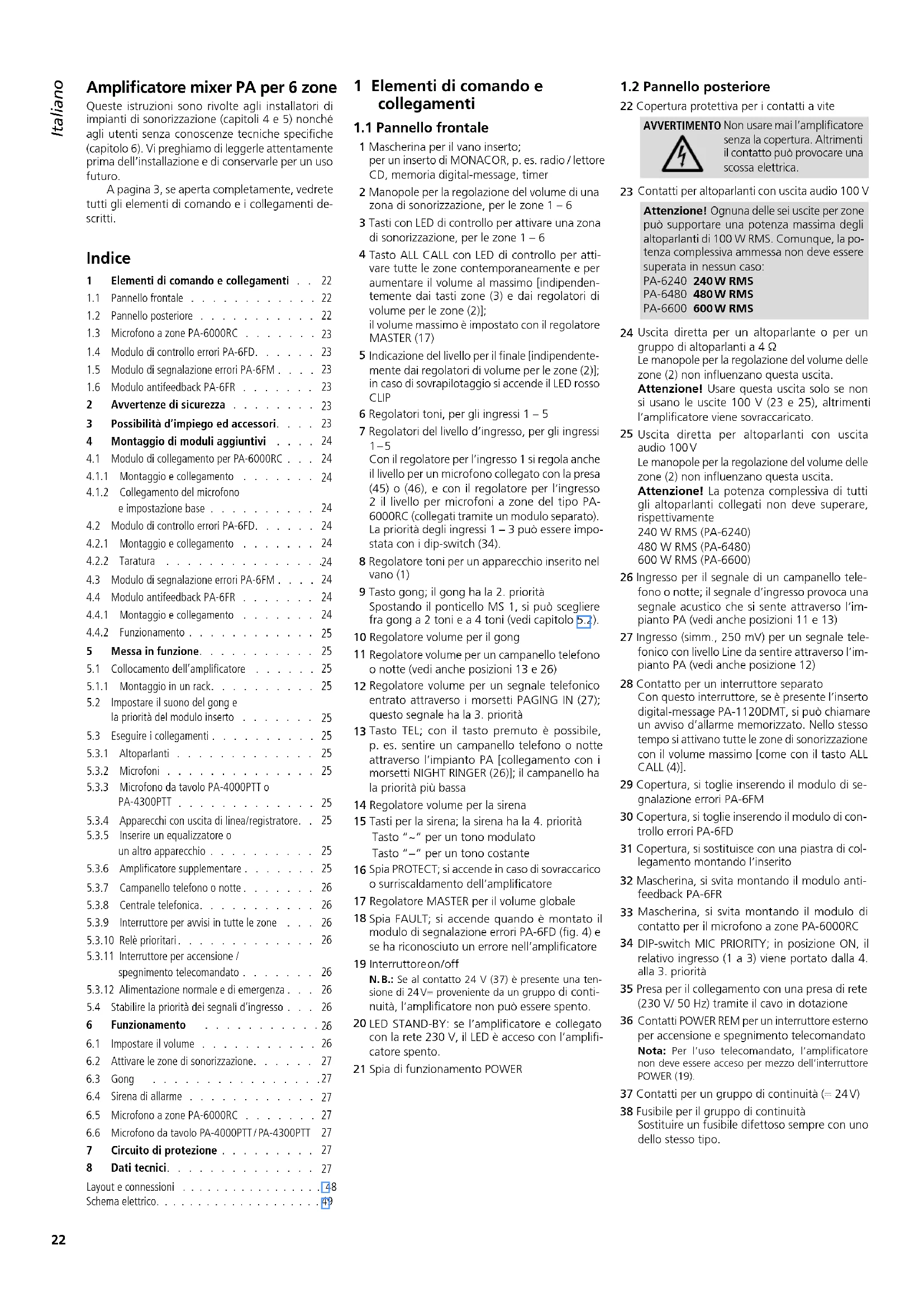 Queste struczioni sono rivolteagli installatori di impianti di sonorizzazione (capitoli 4 e 5) nonché agli utenti nella conoscenze tecniche specifiche (capitolo 6).Vi preghiamo di leggerle attendamente prima dell'installazione e di conservarle per un uso futuro.