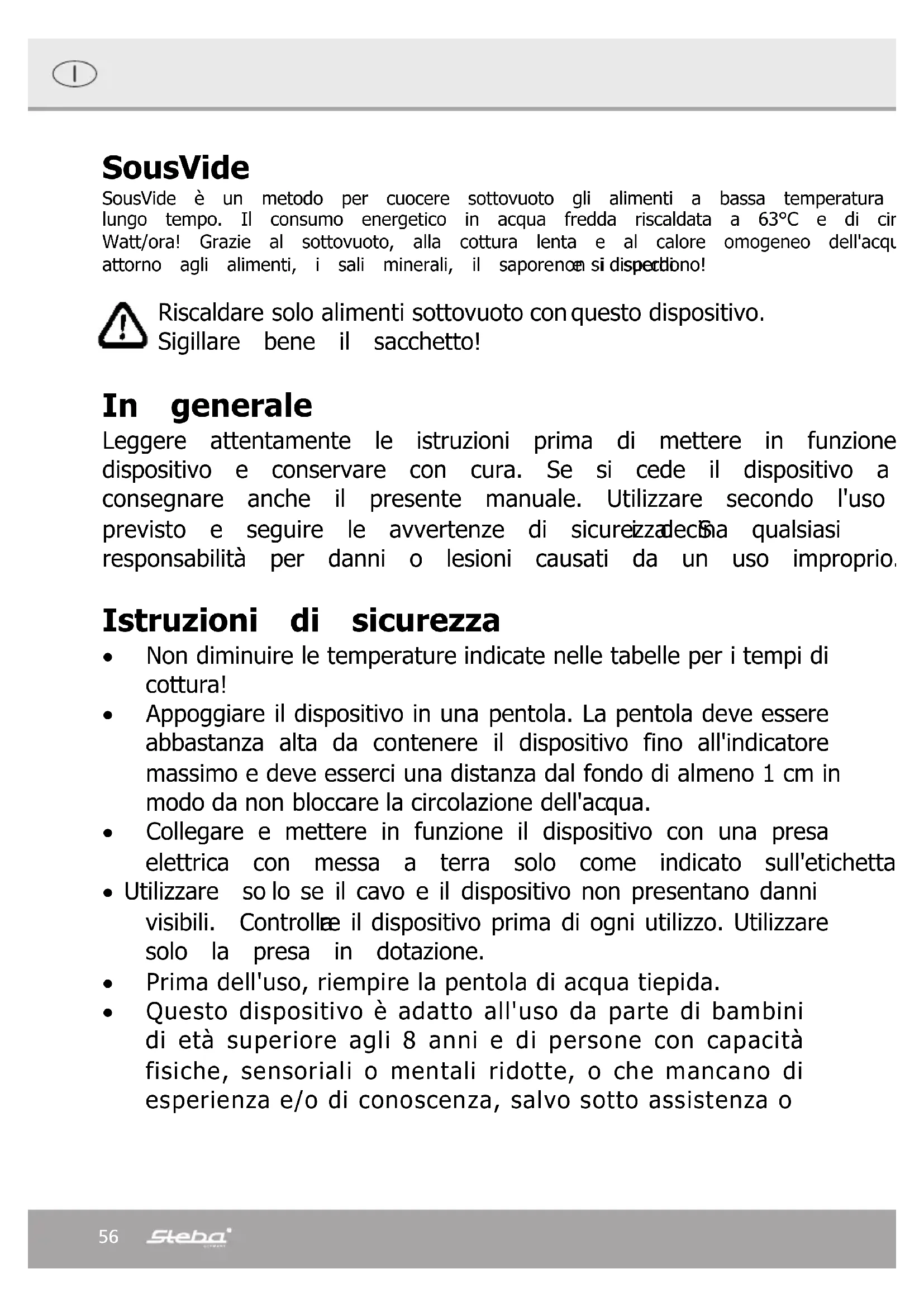 Scarica le istruzioni per il tuo Pentola in formato PDF gratuitamente! Trova il tuo manuale SV 50 - STEBA e riprendi in mano il tuo dispositivo elettronico. In questa pagina sono pubblicati tutti i documenti necessari per l'utilizzo del tuo dispositivo. SV 50 del marchio STEBA.