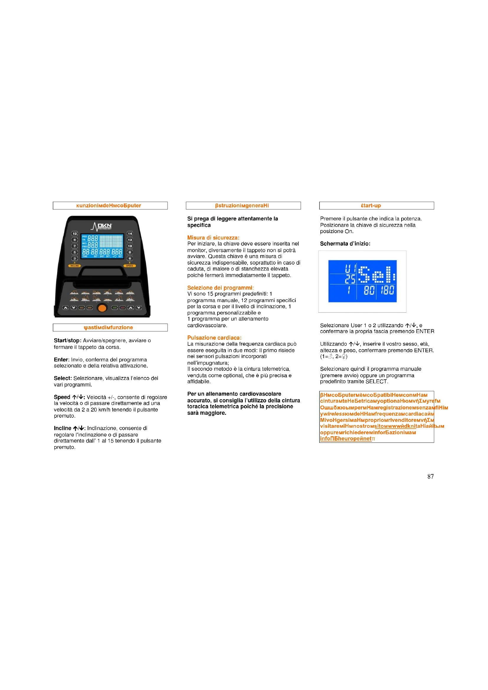 Per evitare rischi alla salute e se non si è fisicamente attivi da un lungo periodo di tempo, si raccomanda di consultare il medico di fiducia prima di iniziare l'allenamento.