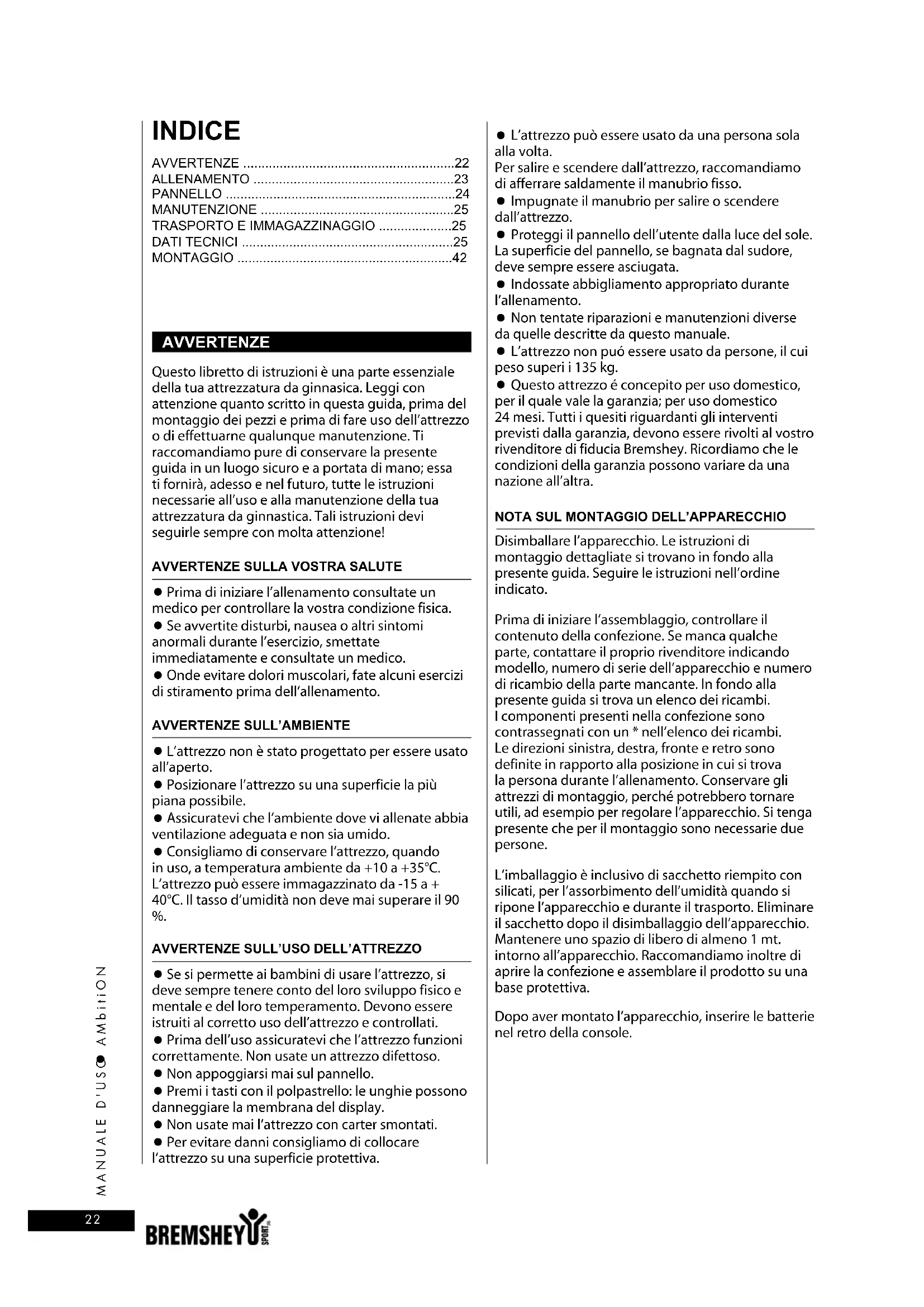 A causa di una politica volta a un continuo sviluppo del prodotto, la Bremshey Sport si riserva il diritto di effettuareambiamenti nelle caratteristiche degli attrezzi,enza darne relativopreavviso.