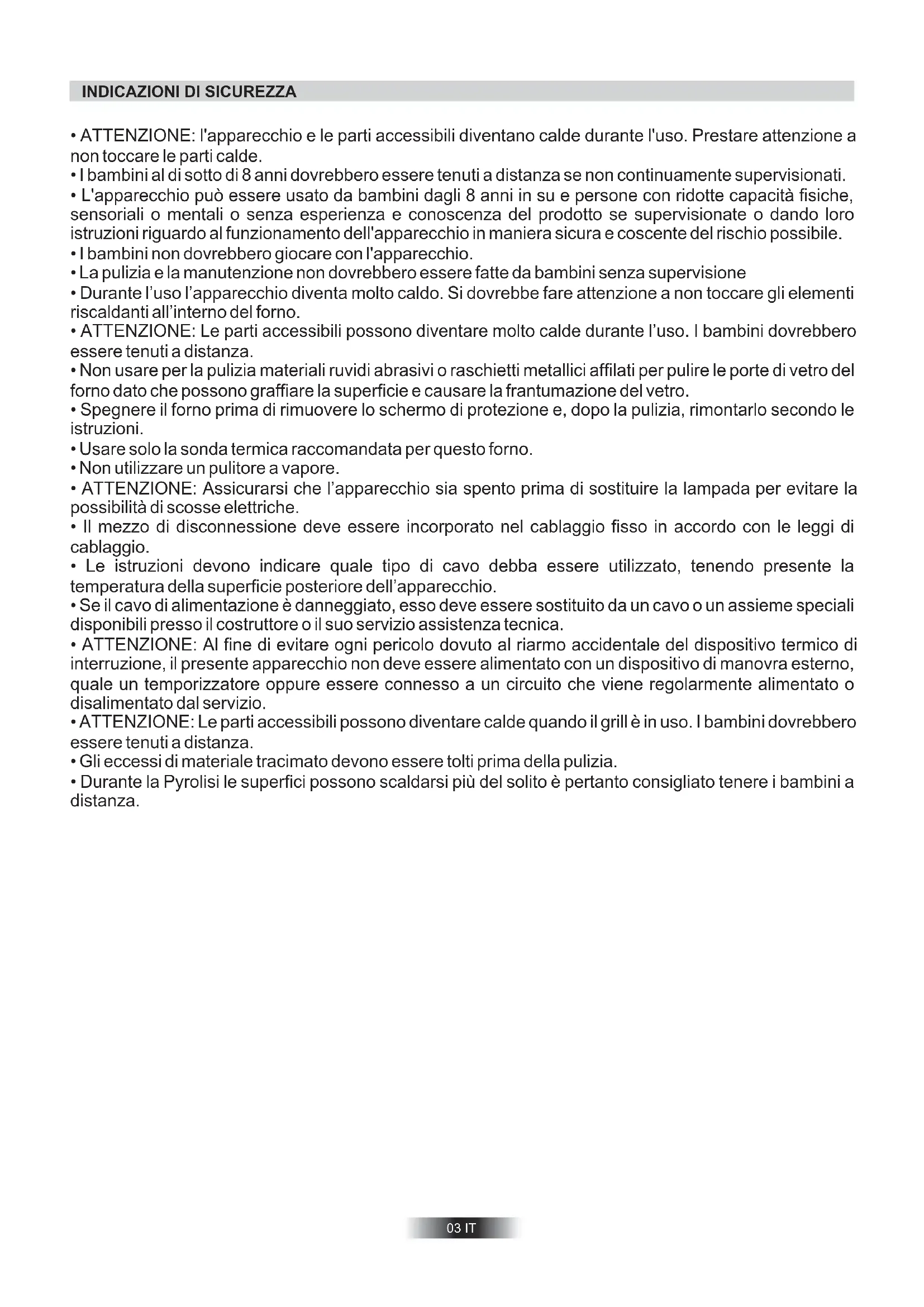 - ATTENZIONE: Le parti accessibili possono diventare molto calde durante l’uso. I bambini dovrebbero essere tenuti a distanza.