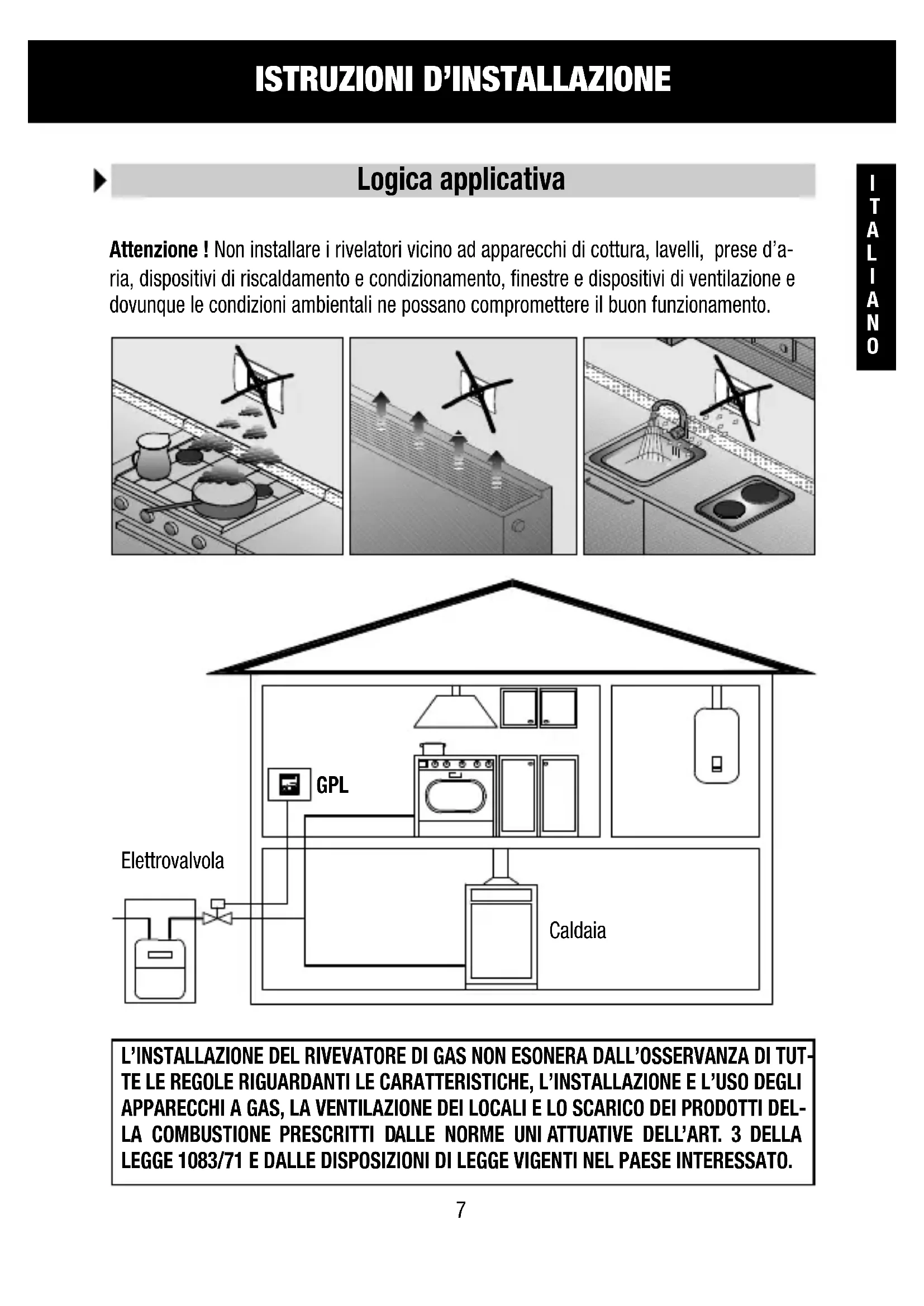 Attenzione ! Non installare i rivelatori vicino ad apparecchi di cottura, lavelli, prese d'a-ria, dispositivi di riscaldamento e condizionamento, finestre e dispositivi di ventilazione e dovunque le condizioni ambientali ne possano compromettere il buon funzionamento.