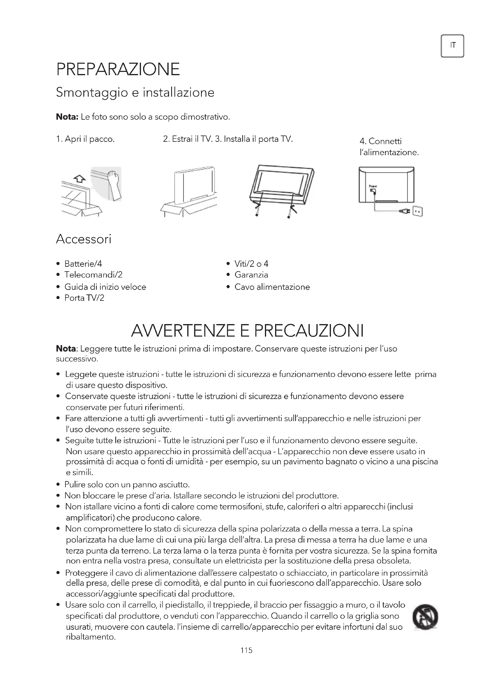 2. Estrai il TV. 3. Installa il porta TV.