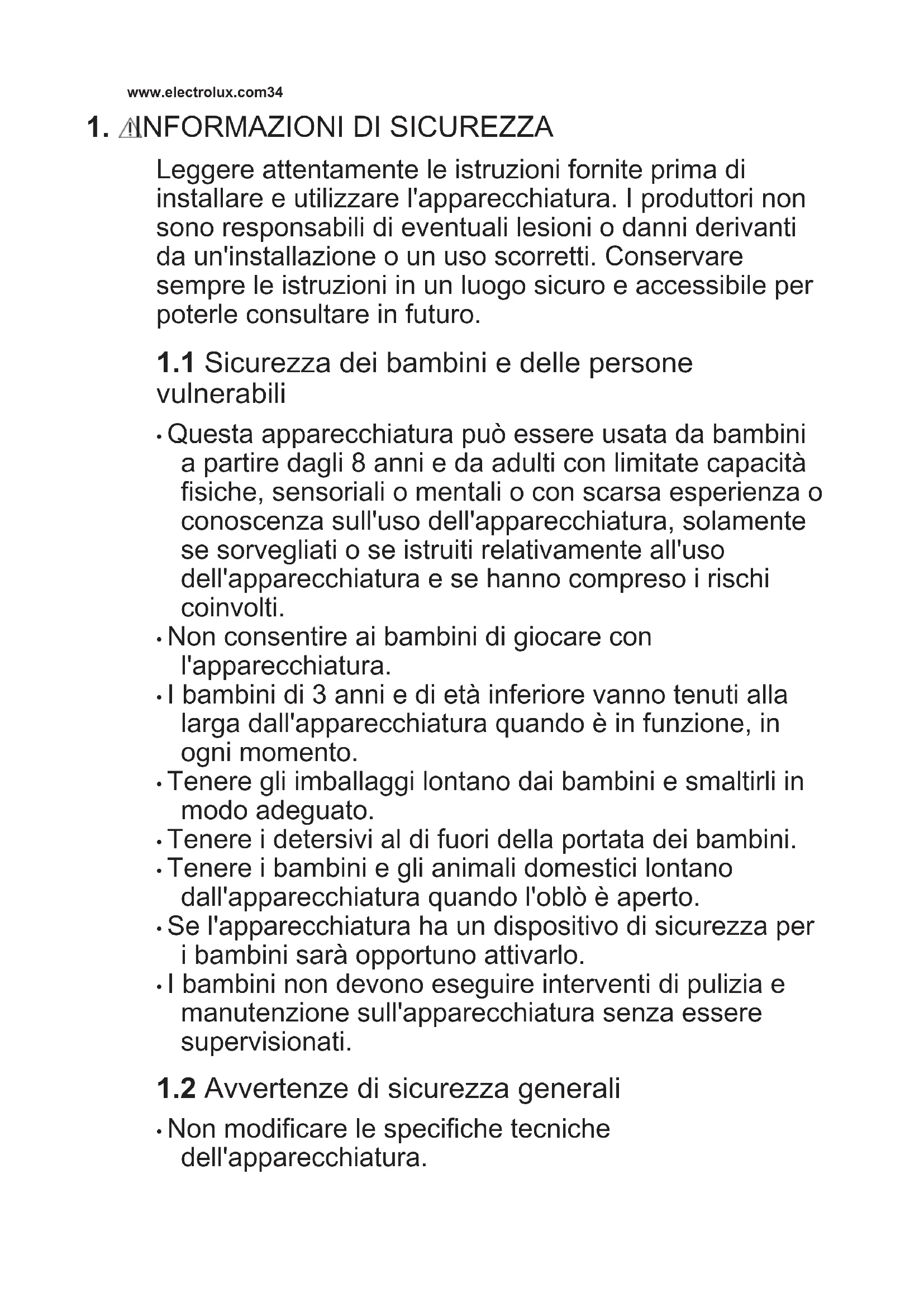 Grazie per aver acquistato un'apparecchiatura Electrolux. Avete scelto un prodotto che ha alle spalle decenni di esperienza professionale e innovazione. Ingegnoso ed elegante, è stato progettato pensando a voi. Quindi, in qualsiasi momento desiderate utilizzarlo, potete esser certi di ottenere sempre i migliori risultati. Benvenuti in Electrolux. Visitate il nostro sito web per: Ricevere consigli d'uso, scaricare i nostri opuscoli, eliminare eventuali anomalie, ottenere informazioni sull'assistenza: www.electrolux.com/webselfservice Registrare il vostro prodotto e ricevere un servizio migliore: www.registerelectrolux.com Acquistare accessori, materiali di consumo e ricambi originali per la vostra apparecchiatura: www.electrolux.com/shop