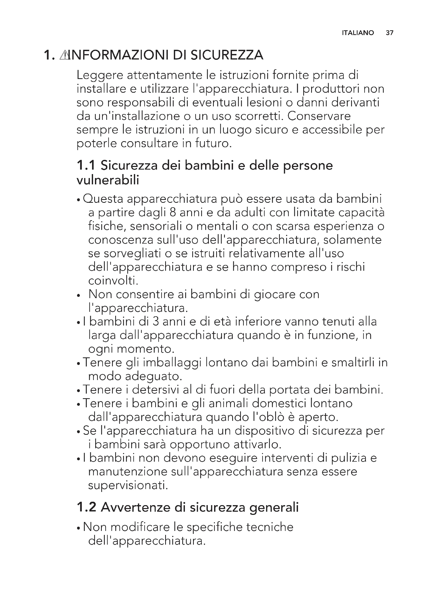 1.1 Sicurezza dei bambini e delle persone