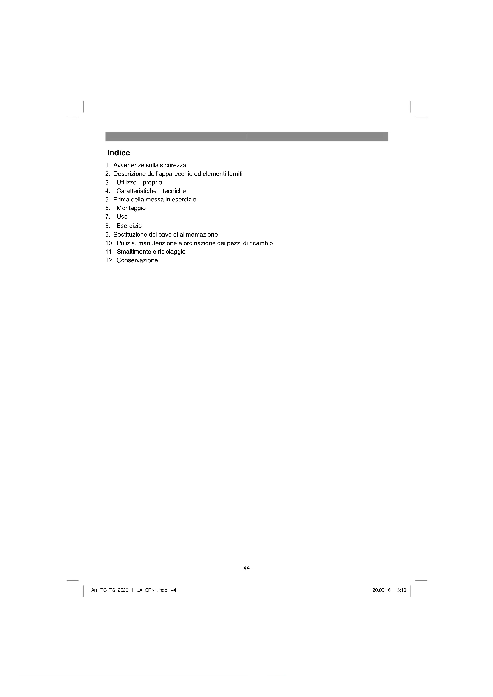 alimentazione Pericolo! Se il cavo di alimentazione di questo apparecchio viene danneggiato deve essere sostituito dal produttore, dal suo servizio di assistenza clienti o da una persona al pari qualifi cata al fi ne di evitare pericoli. Anl_TC_TS_2025_1_UA_SPK1.indb 51Anl_TC_TS_2025_1_UA_SPK1.indb 51 20.06.16 15:1020.06.16 15:10I