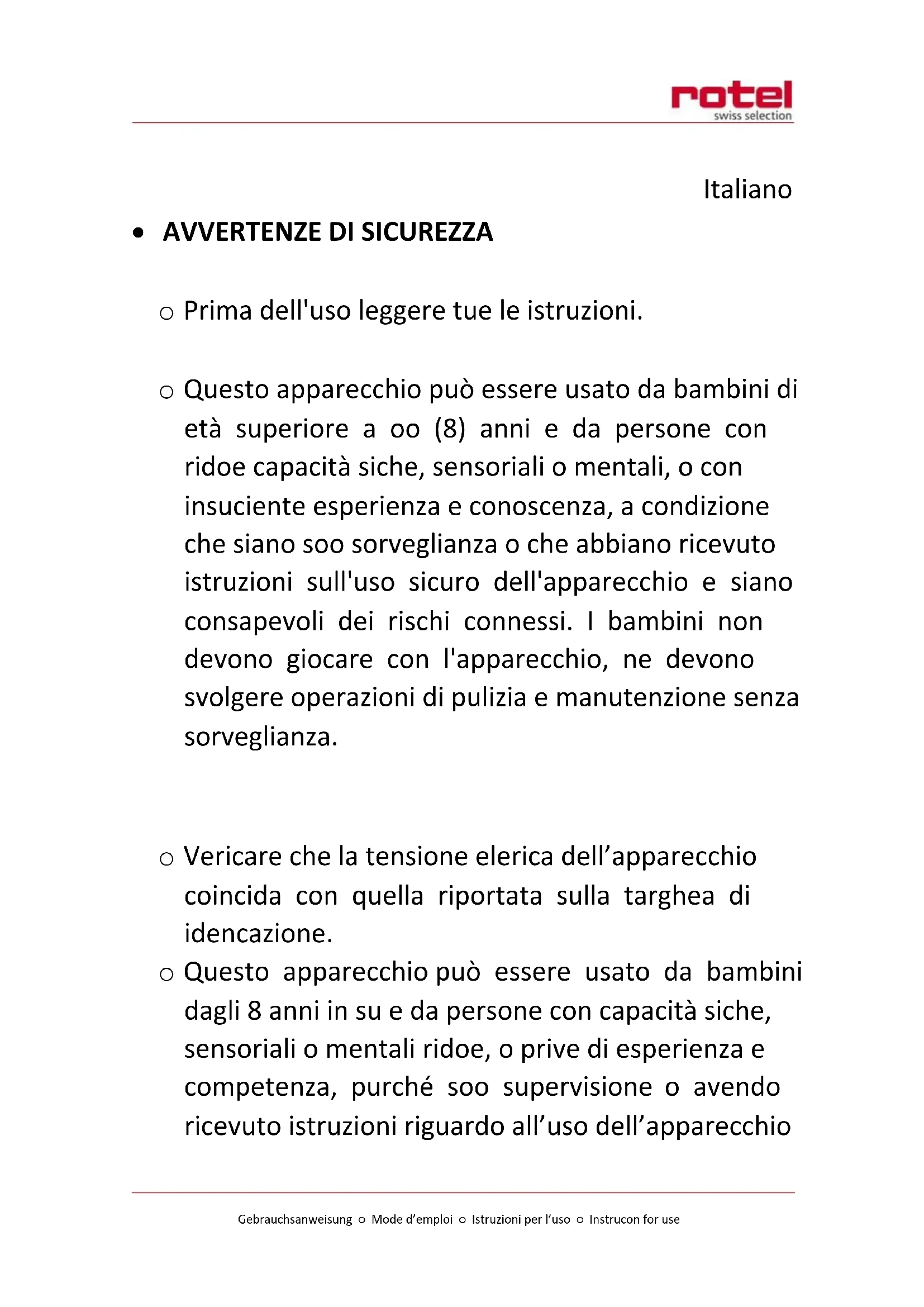 - Questo apparecchio può essere usato da bambini dagli 8 anni in su e da persone con disponţă siche, sensoriali o mentali ridoe, o privé di esperienza e competenza, purché soo supervisione o avendo ricevuto istruzioni riguardo all'uso dell'apparecchio